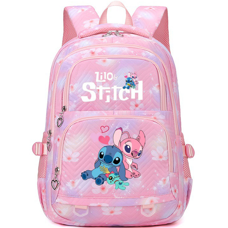 Pink Lilo & Stitch Backpack for Teen Anime Print School Bookbag for Grades 3–8