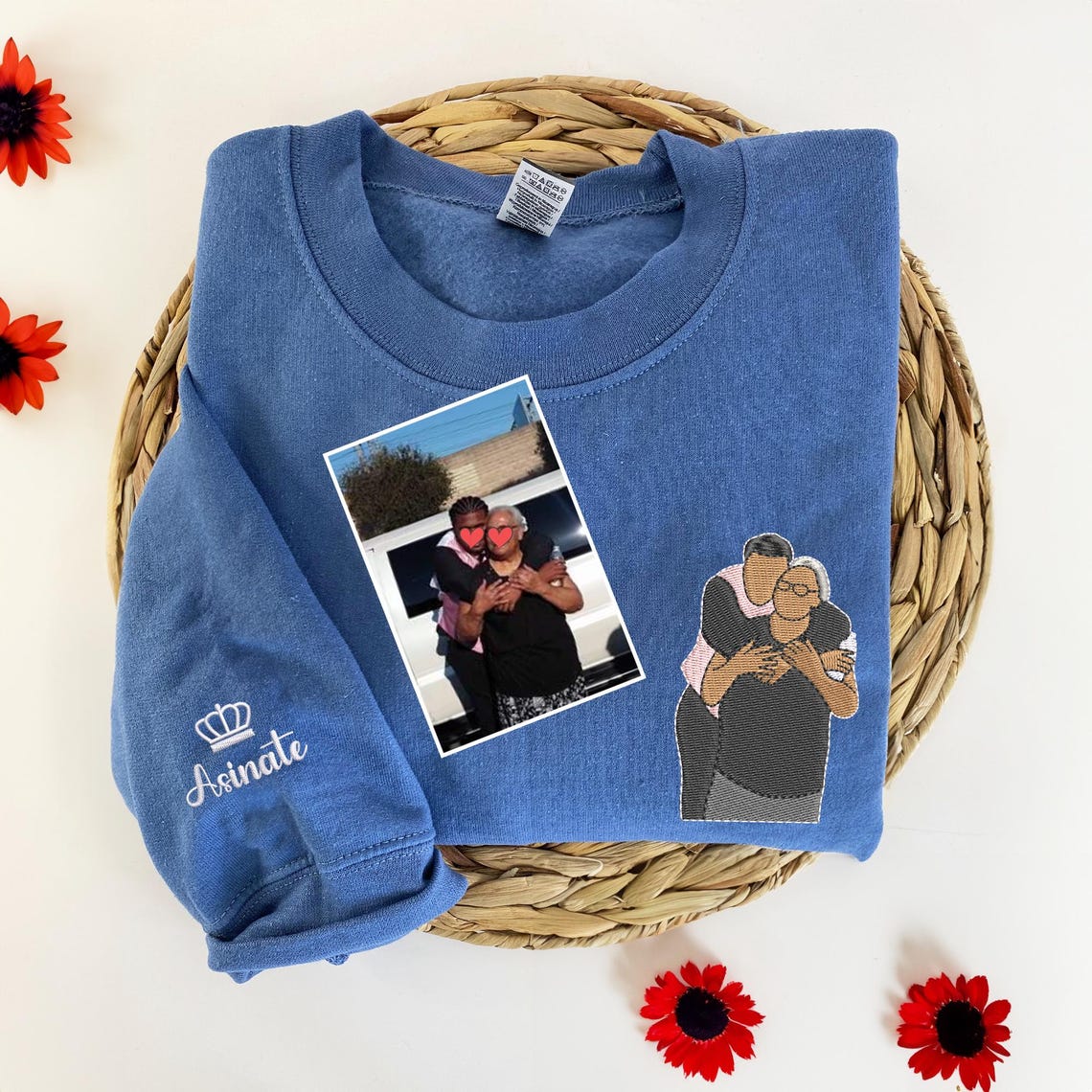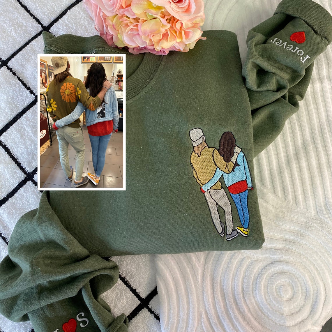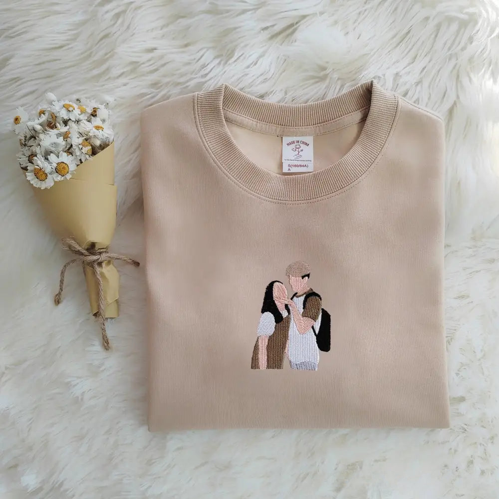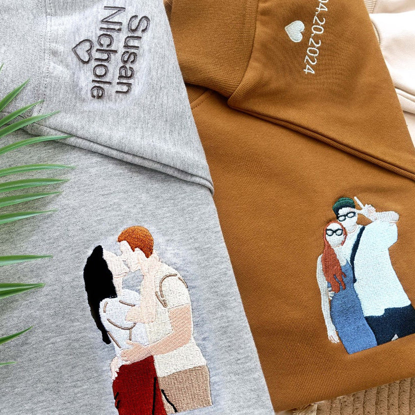 Custom Couple Portrait Embroidered Sweatshirt Gift: Personalized, multicolor sweatshirts, hoodies, and shirts (S-3XL) with custom embroidery. Featuring drop shoulders, long sleeves, and a comfortable cotton blend. Ideal for daily wear, these unique pieces add a special touch to any outfit.