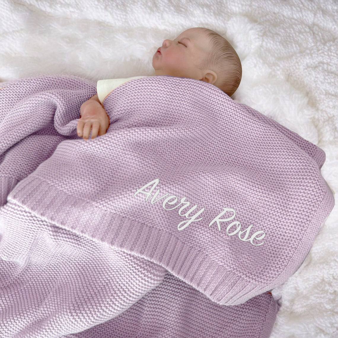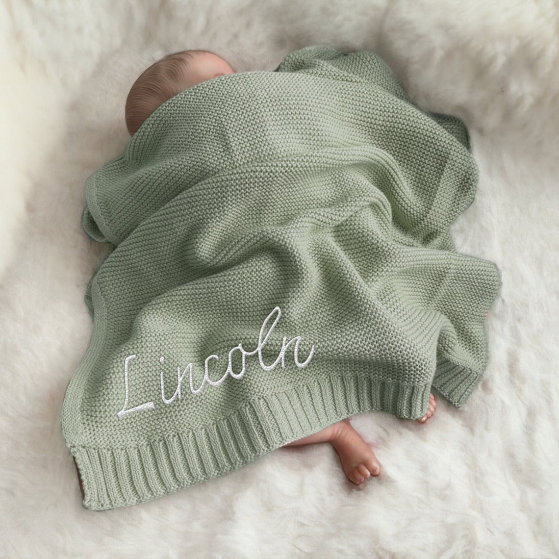 Custom Embroidered Baby Name Blanket Personalized Soft Breathable Cotton Knit Blanket Gift