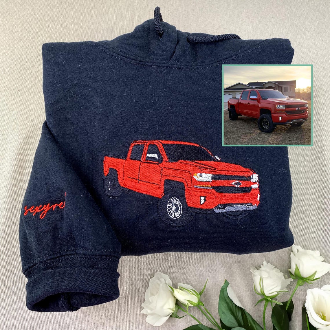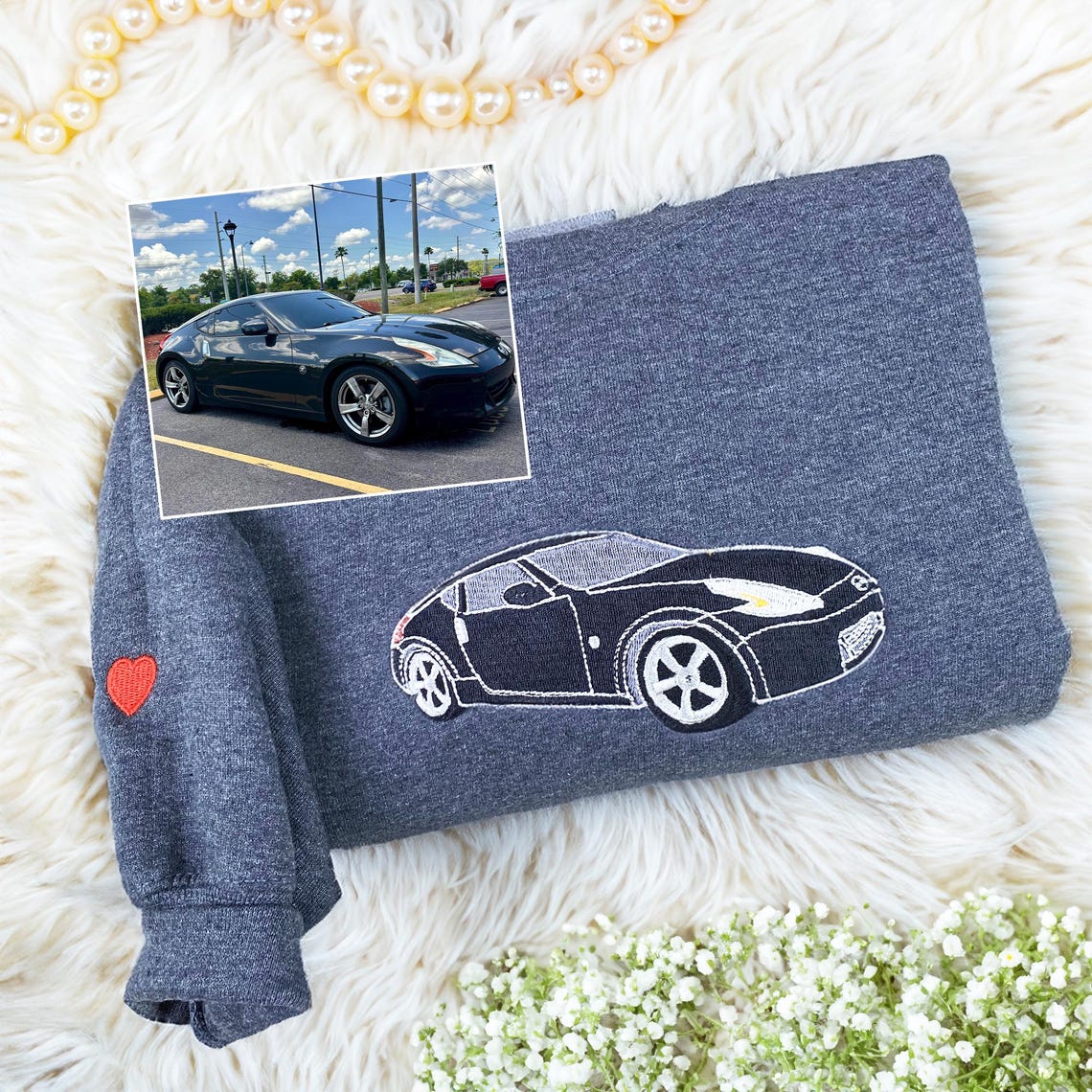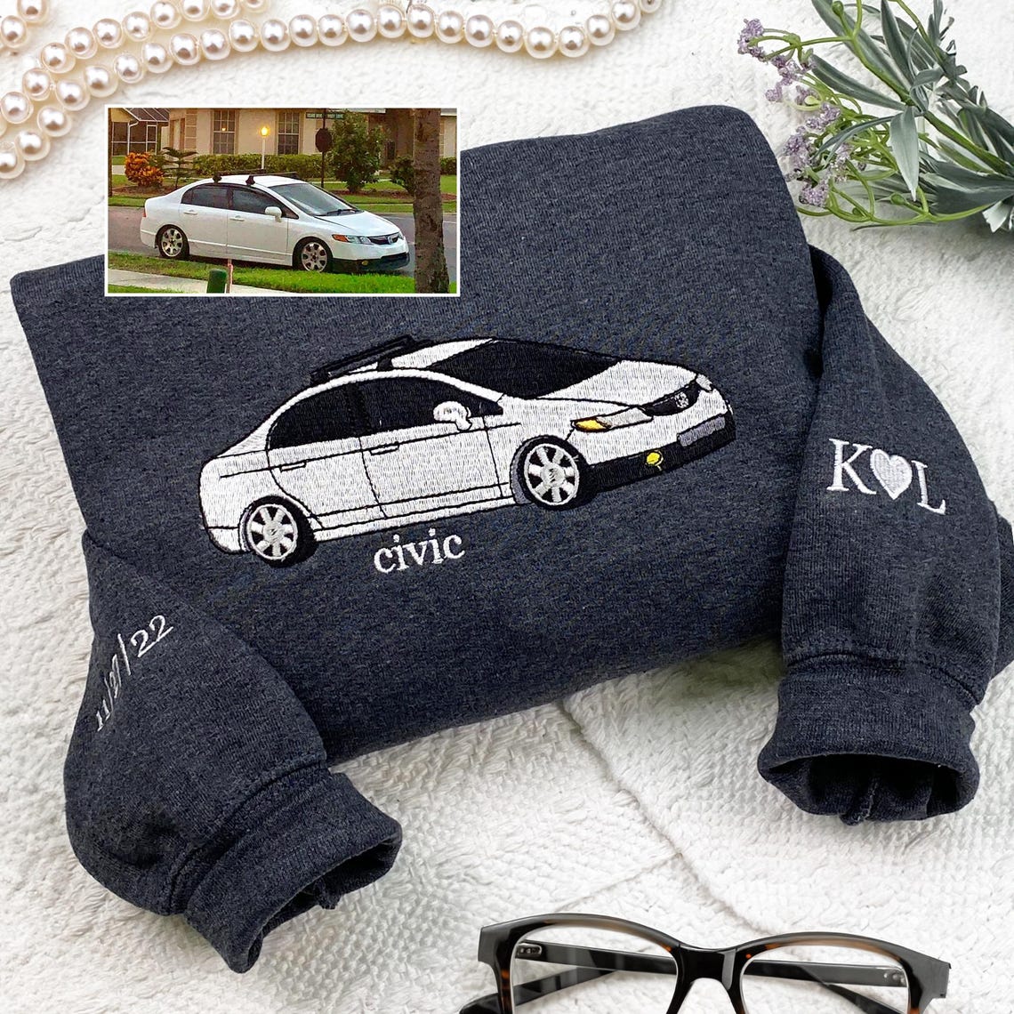 Custom Embroidered Car Sweatshirt Personalized Car Photo Portrait Pullover Gift