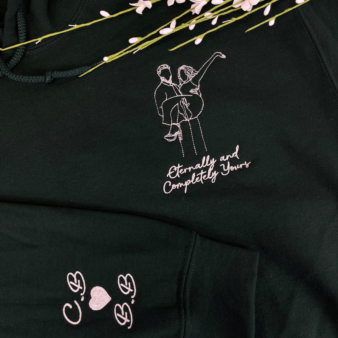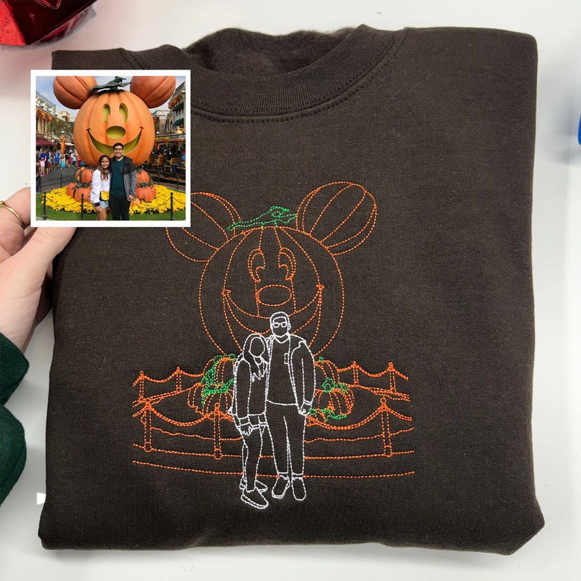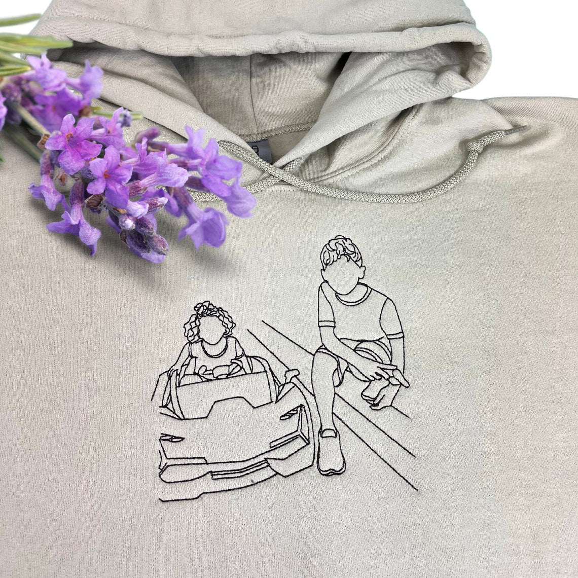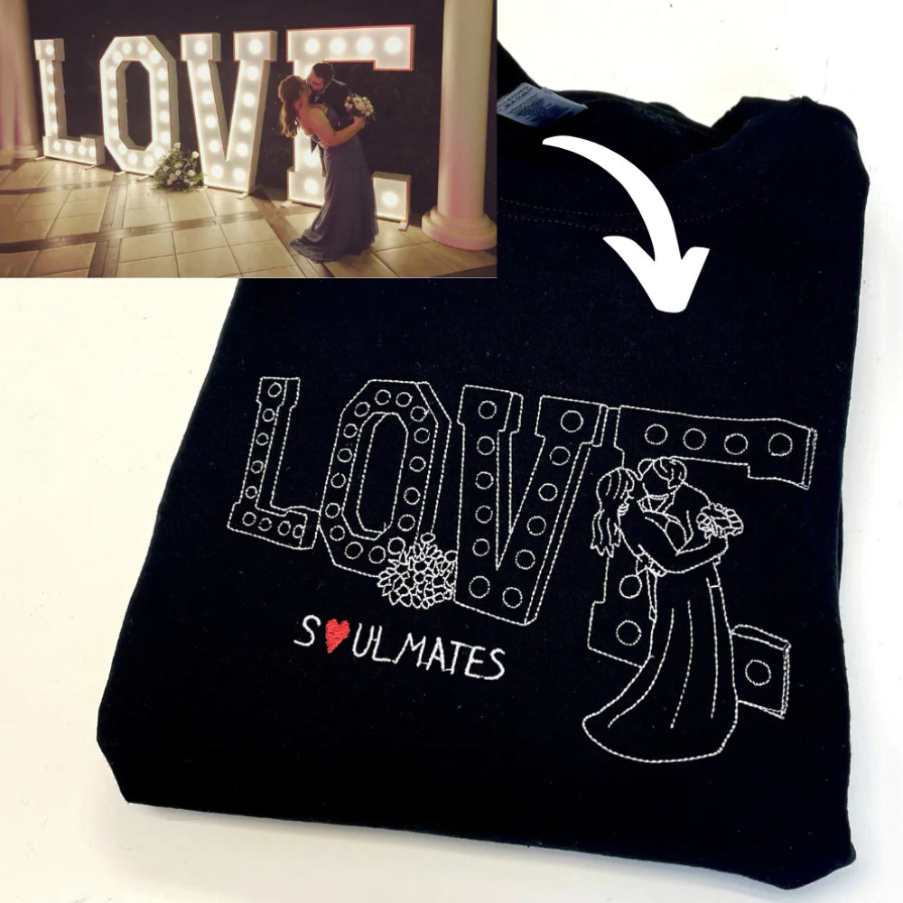 Custom Embroidered Sweatshirt Personalized Couple Photo Portrait Outline Sweatshirt Gift for Couple & Friend