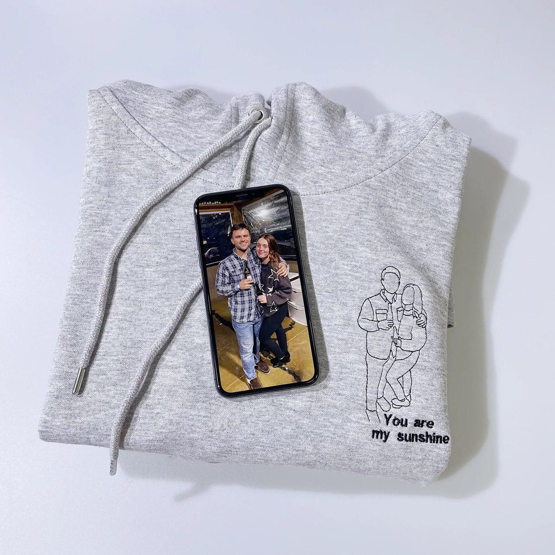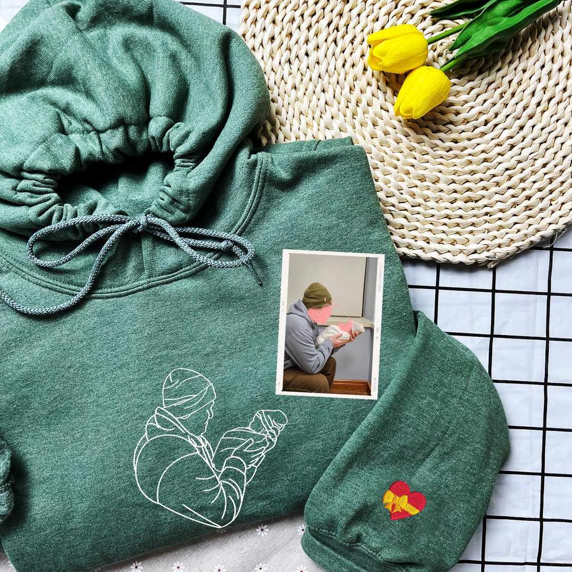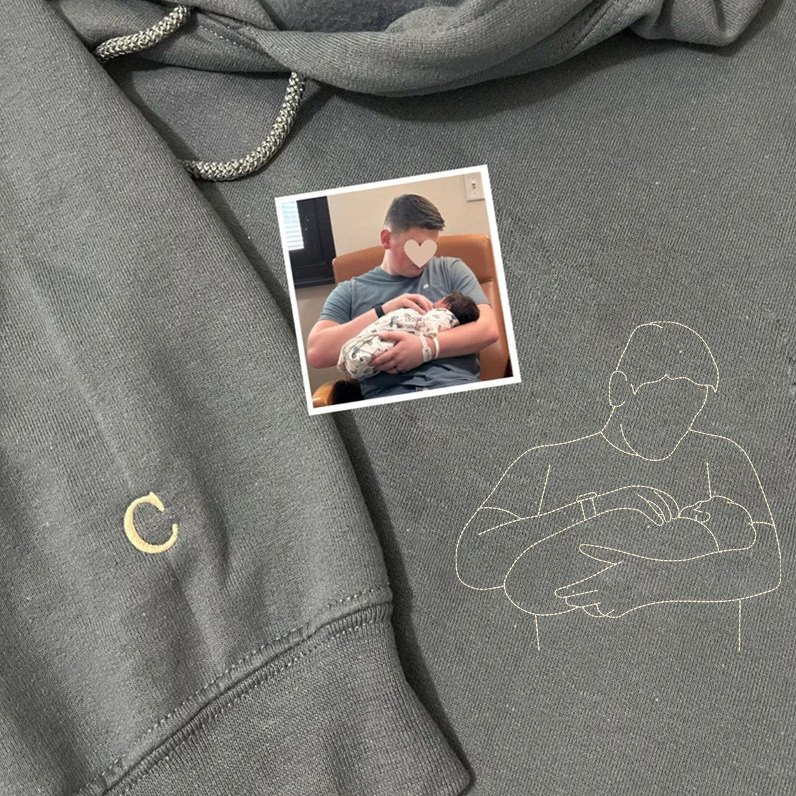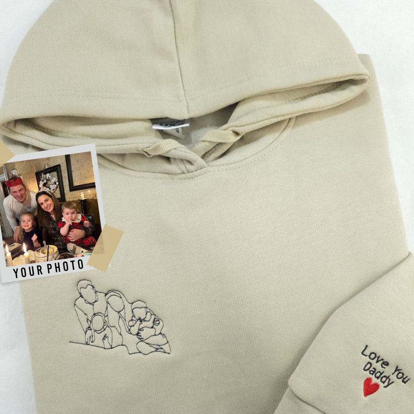 Custom Embroidered Dad Hoodie Personalized Papa with Kids Portrait from Photo Hoodie Unique Gift for Father's Day