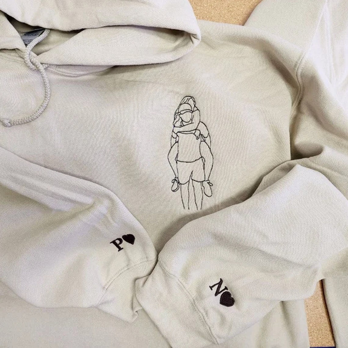 Get your Custom Dad with Kids Photo Portrait Embroidered Hoodie! Crafted from a cozy 80% cotton, 20% polyester blend, this personalized hoodie is perfect for daily wear. Available in sizes S-3XL, it features a drop shoulder design and long sleeves for ultimate comfort. Make your memories wearable today!