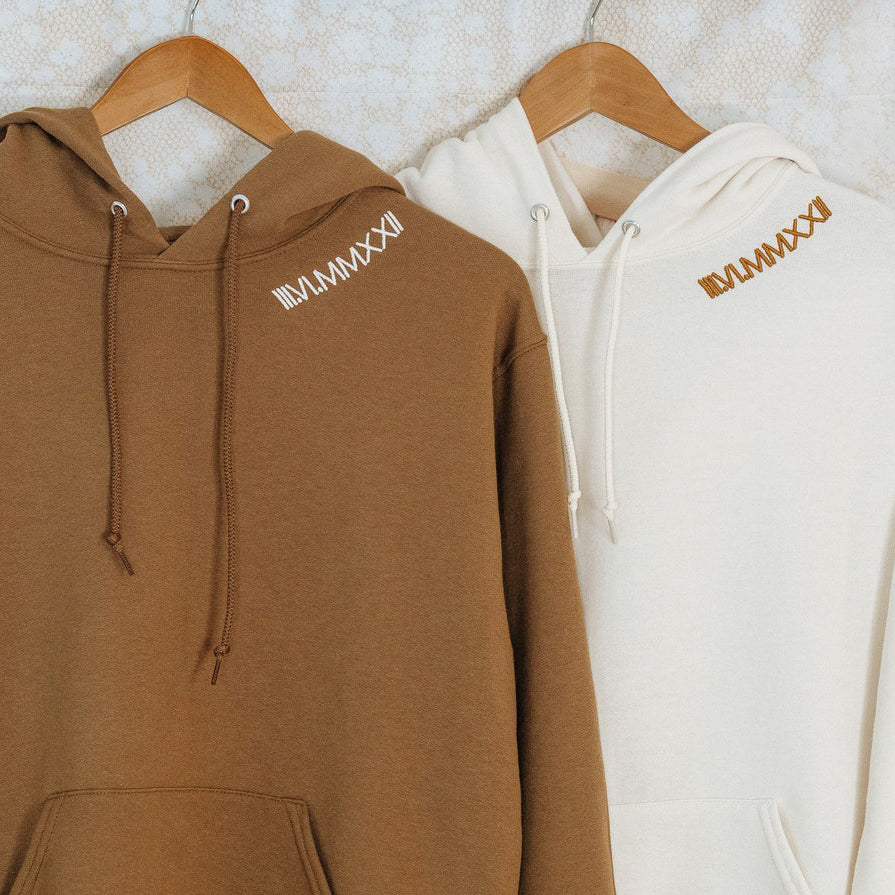 Elevate your style with our Custom Embroidered Roman Numeral Sweatshirt, perfect for couples celebrating special dates! This personalized sweatshirt features custom Roman numerals embroidered on the sleeve, representing significant dates like anniversaries or special occasions. Whether it's for Valentine's Day, an anniversary gift, or just to showcase your love, this sweatshirt is a stylish and meaningful choice.
