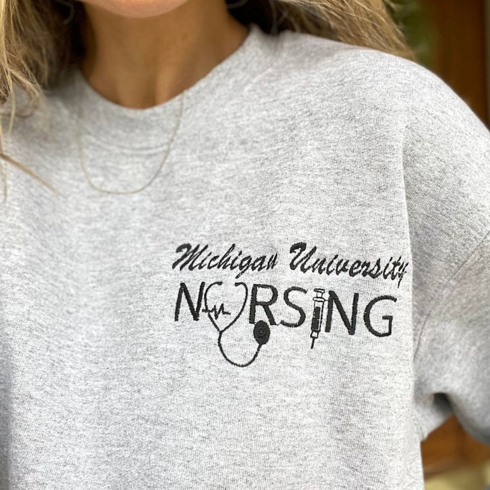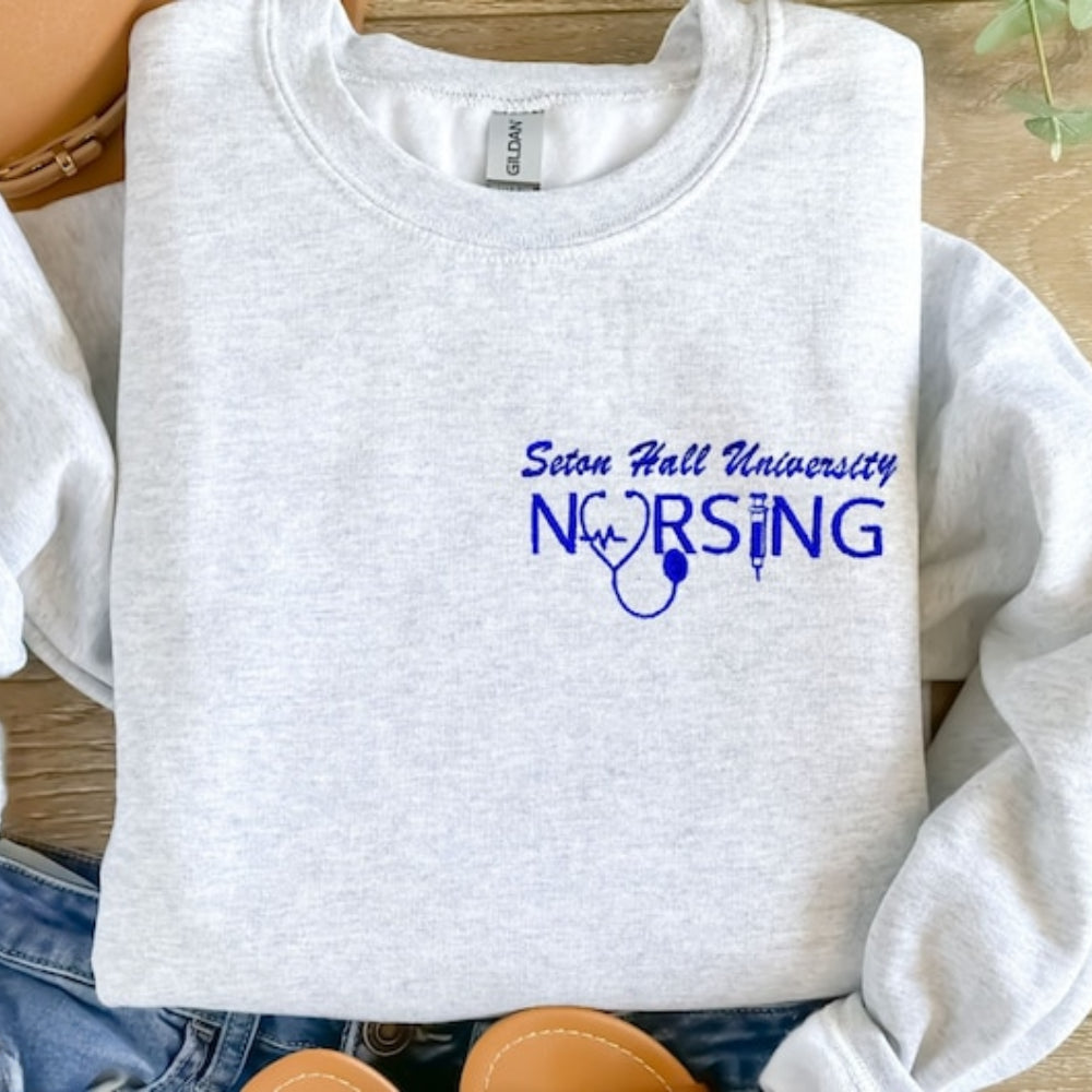 Custom Embroidered Nursing University Sweatshirt Unique Nurse College Grad Sweatshirt
