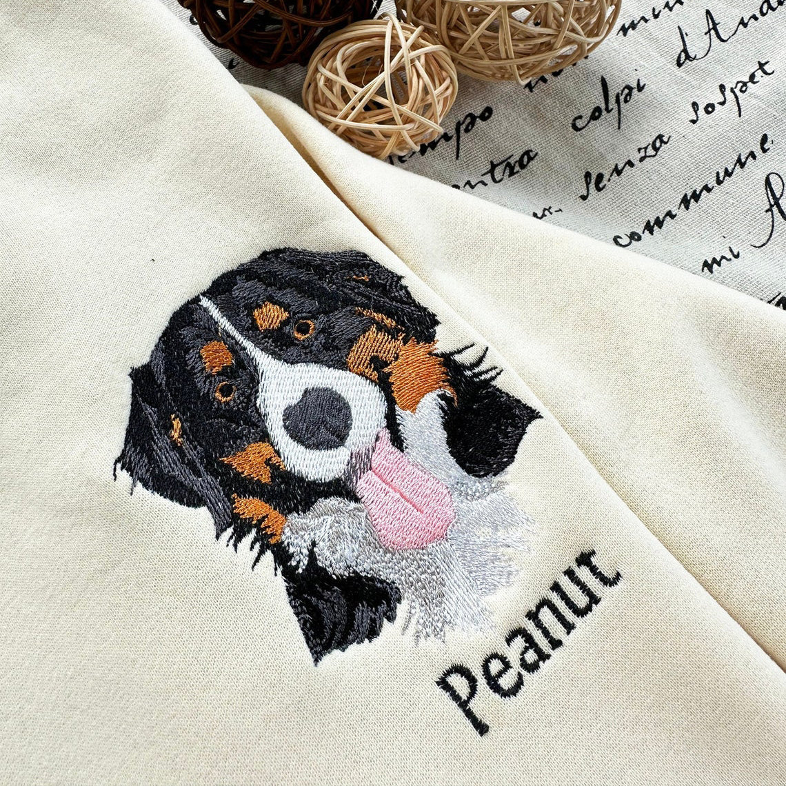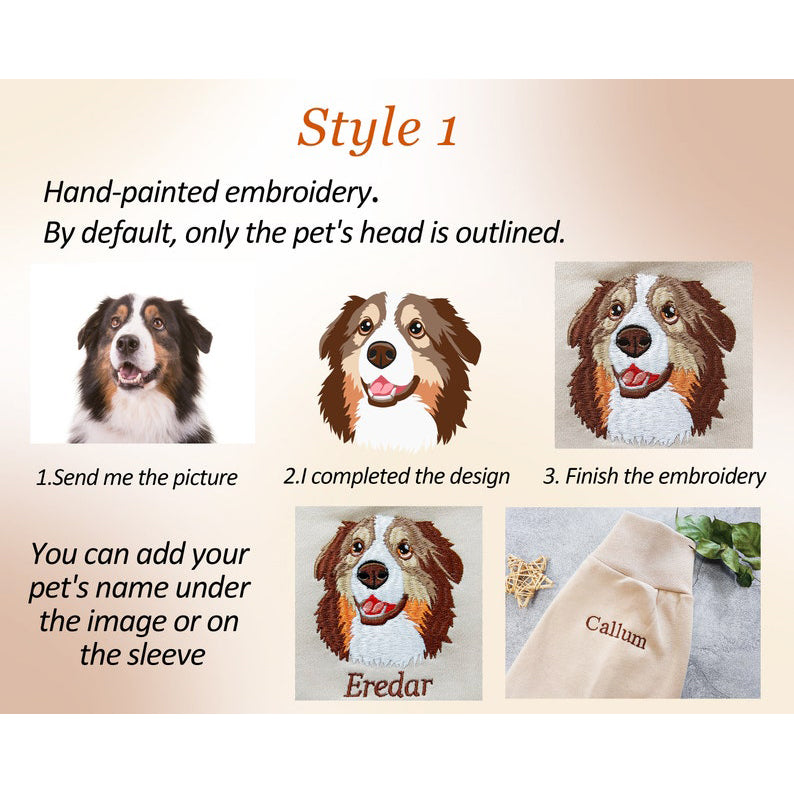 Elevate your pet's style with our Custom Dog Portrait Embroidered Sweatshirt! This personalized sweatshirt features an embroidered portrait of your beloved pet, along with their name, making it a unique and heartfelt gift for pet owners. Whether it's a custom pet hoodie or a personalized sweatshirt, this custom gift celebrates the bond between you and your furry friend.