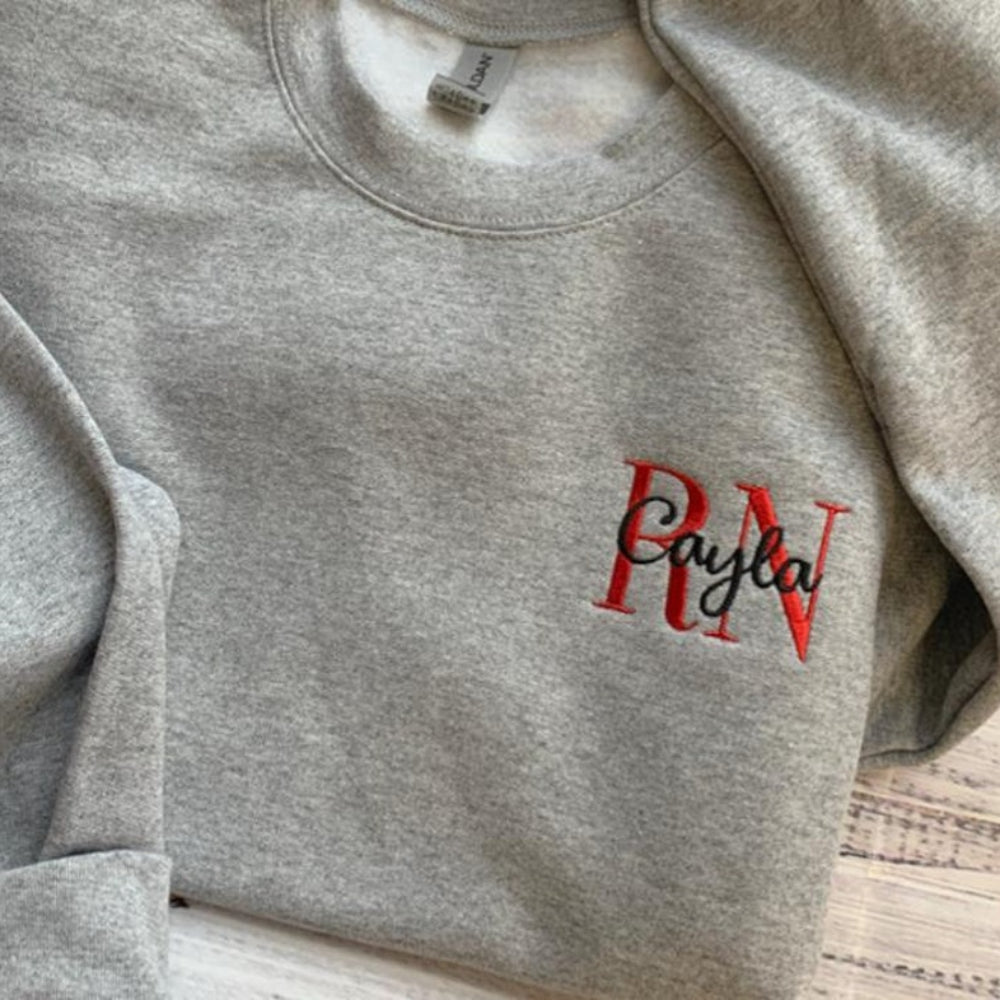 Custom Embroidered RN Sweatshirt Chic Nursing Student Graduation Pullover