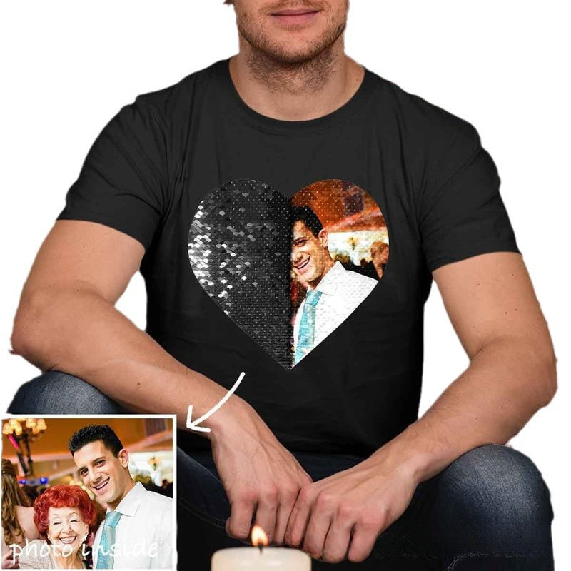 Custom Heart-Shape Flip Sequin with Photo Inside T-Shirt
