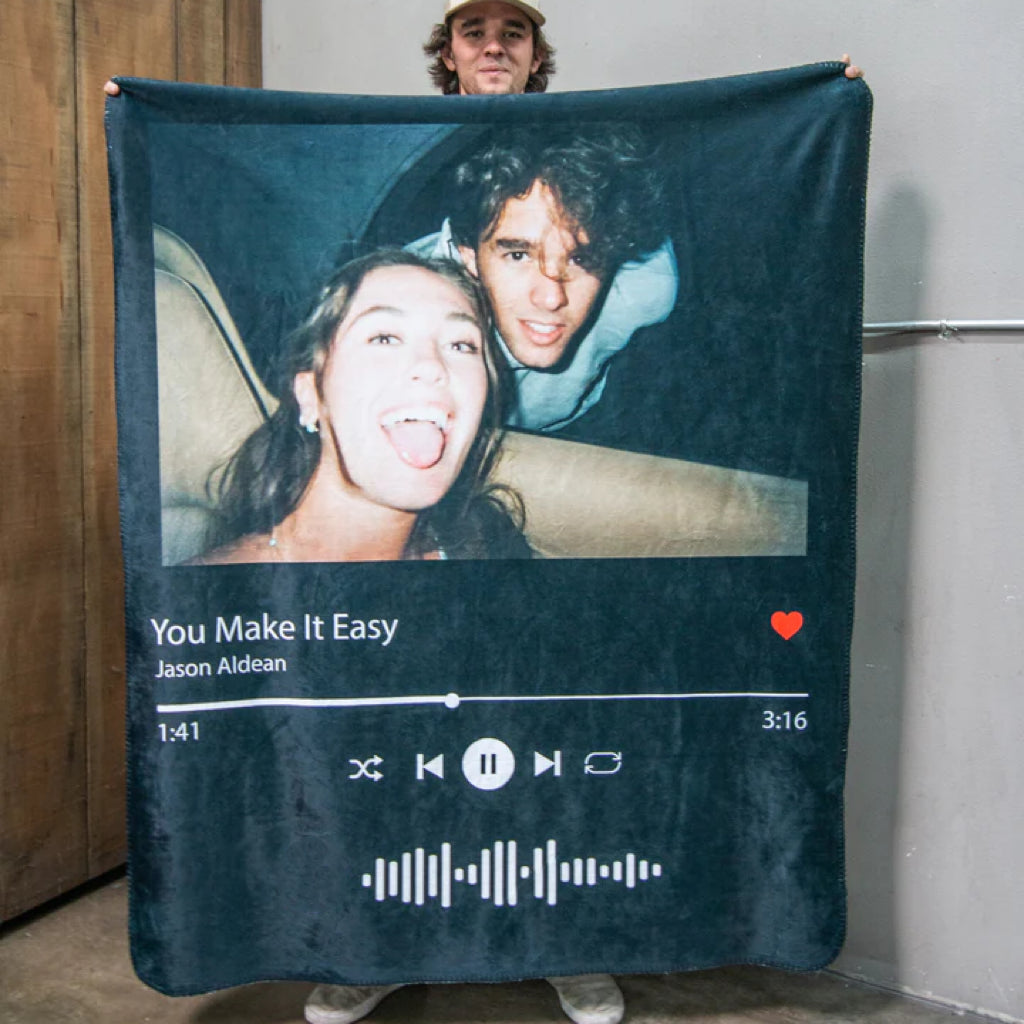 Custom Spotify Photo Blanket Personalized Music Blanket with Your Favorite Song Gift for Friends & Family