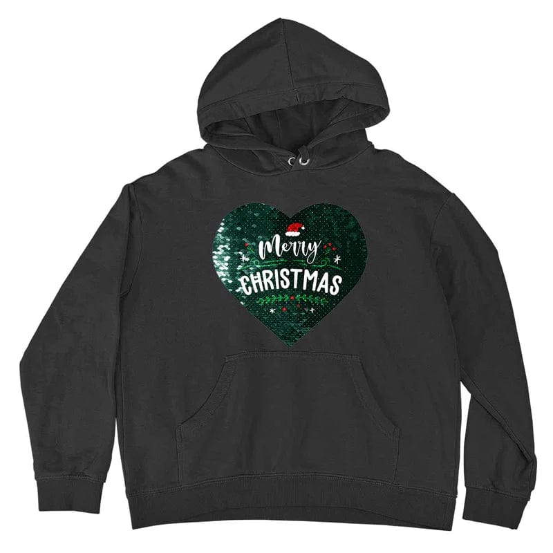 Custom Sequin Hoodie Personalized Flip Sequin Heart Photo & Text Pullover Gift for Couple & Family