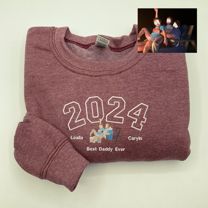 Custom Embroidered Dad Sweatshirt Family Portrait from Photo with Year Sweatshirt Gift for Father's Day