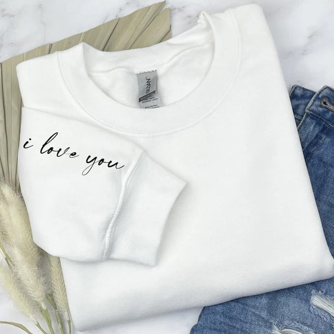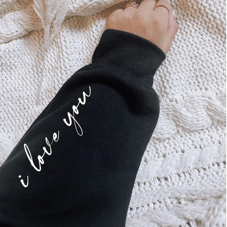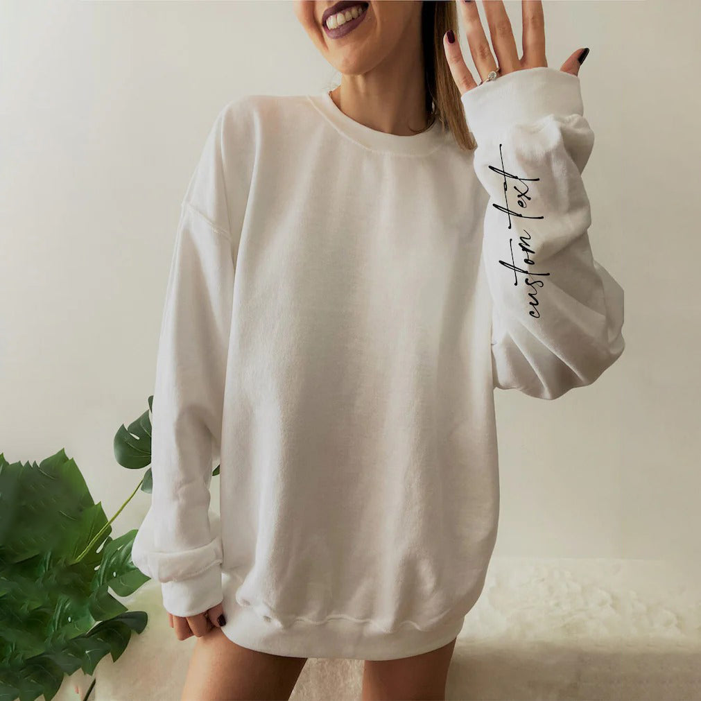 Custom Sleeve Text Sweatshirt Personalized Text Pullover Gift for Friends & Family