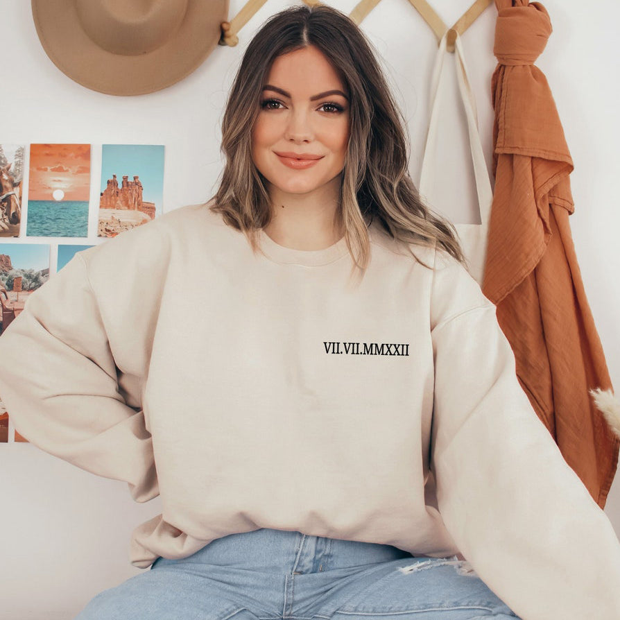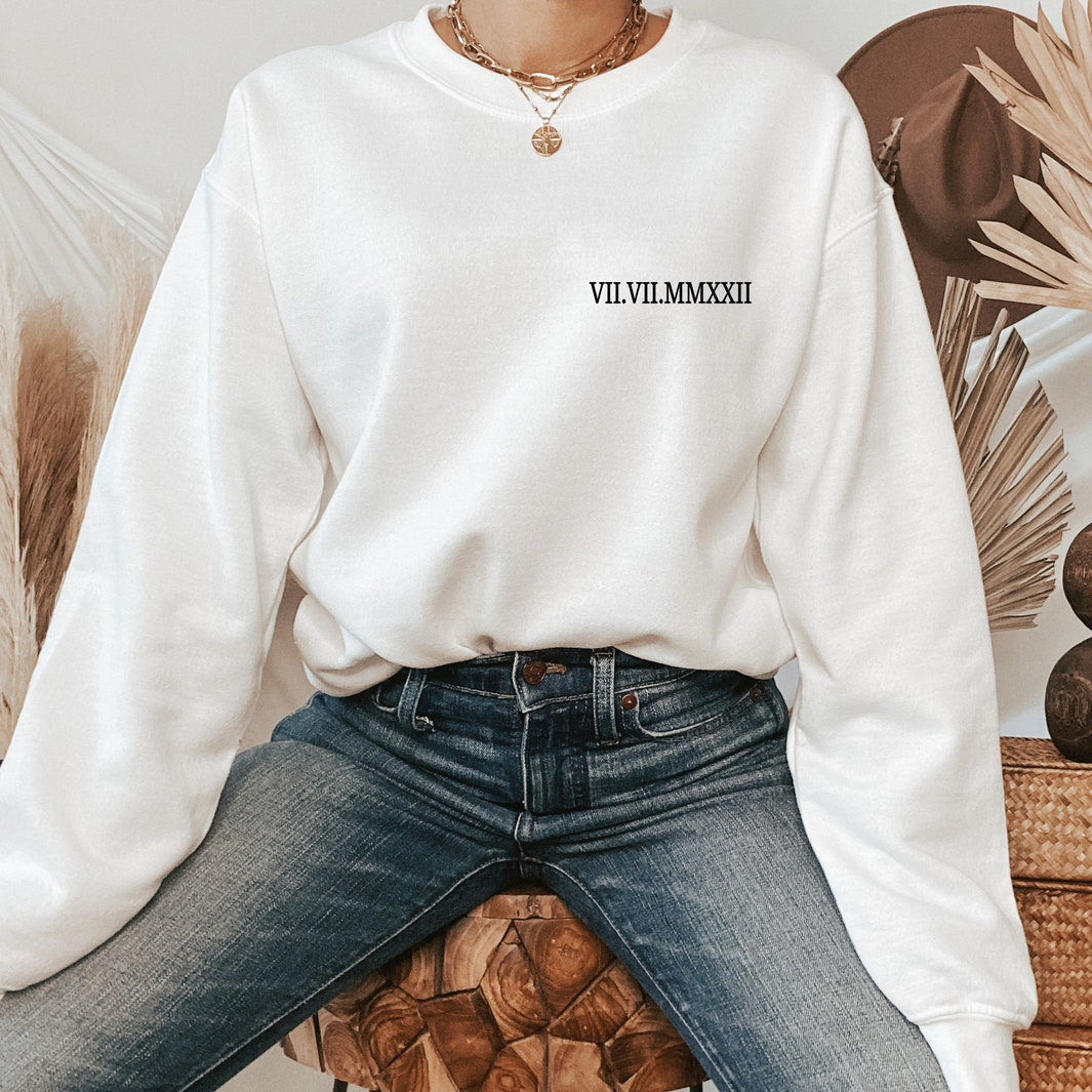 Custom Roman Numeral Sweatshirt Personalized Date Printed Sweatshirt Unique Gift Ideas for Couple