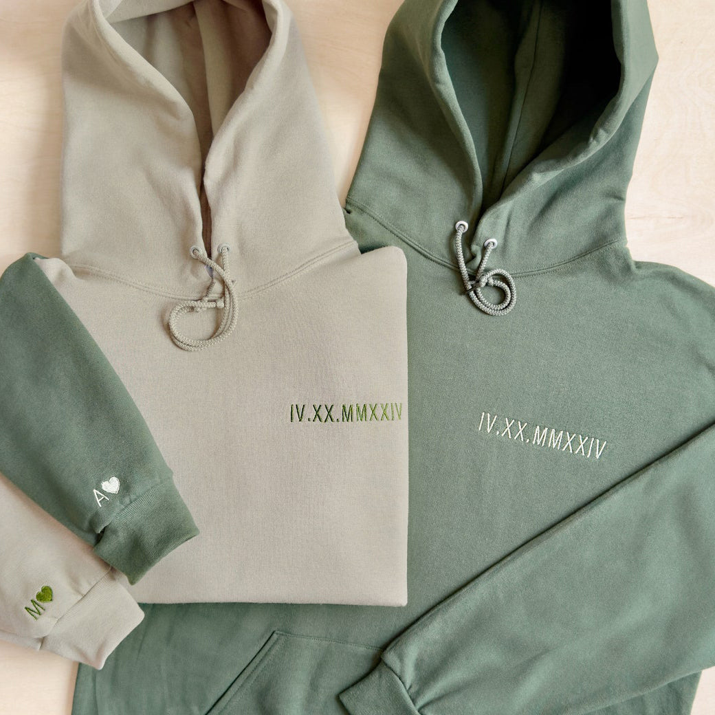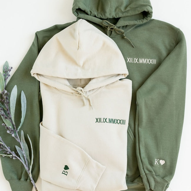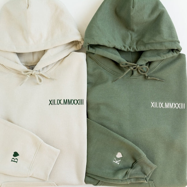 Elevate everyday wear with our Customized Roman Numerals Embroidered Couple Hoodie. Crafted from soft cotton, personalize it with your special date. A unique way to celebrate love, perfect for any occasion.