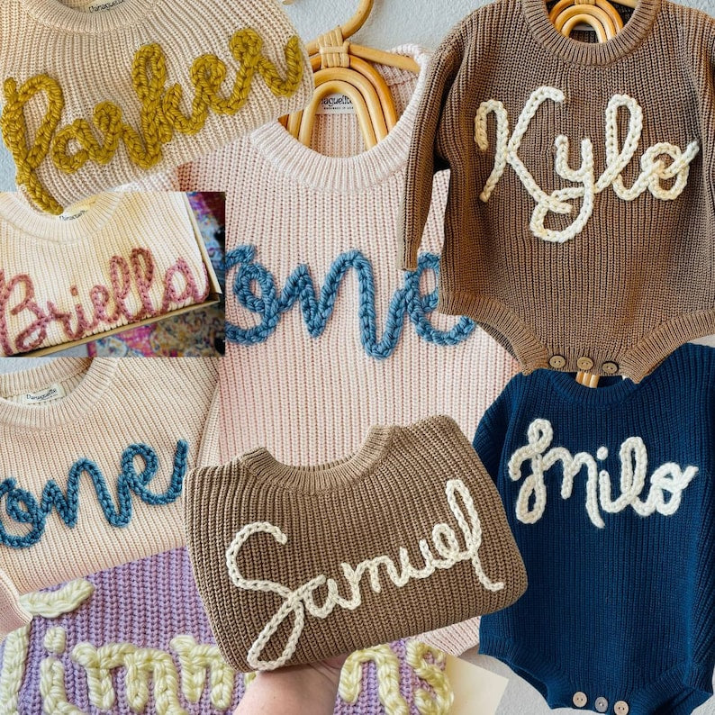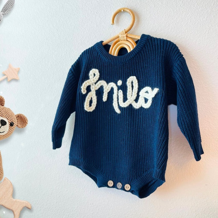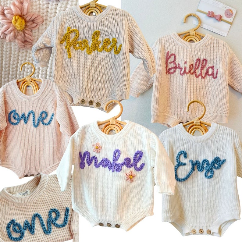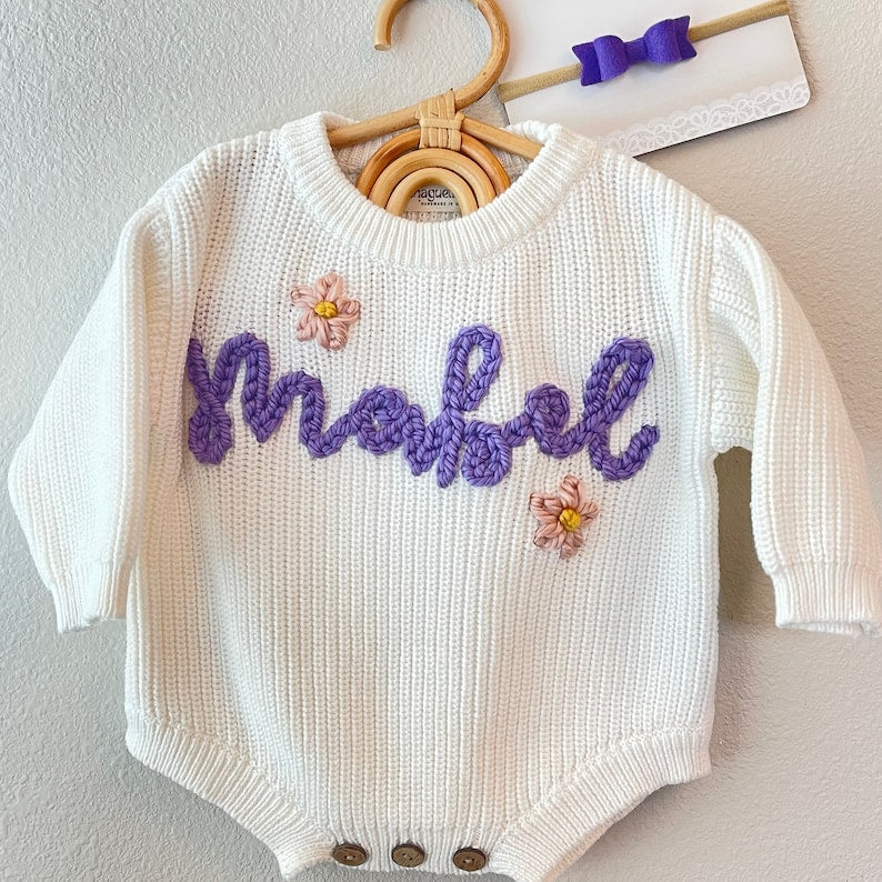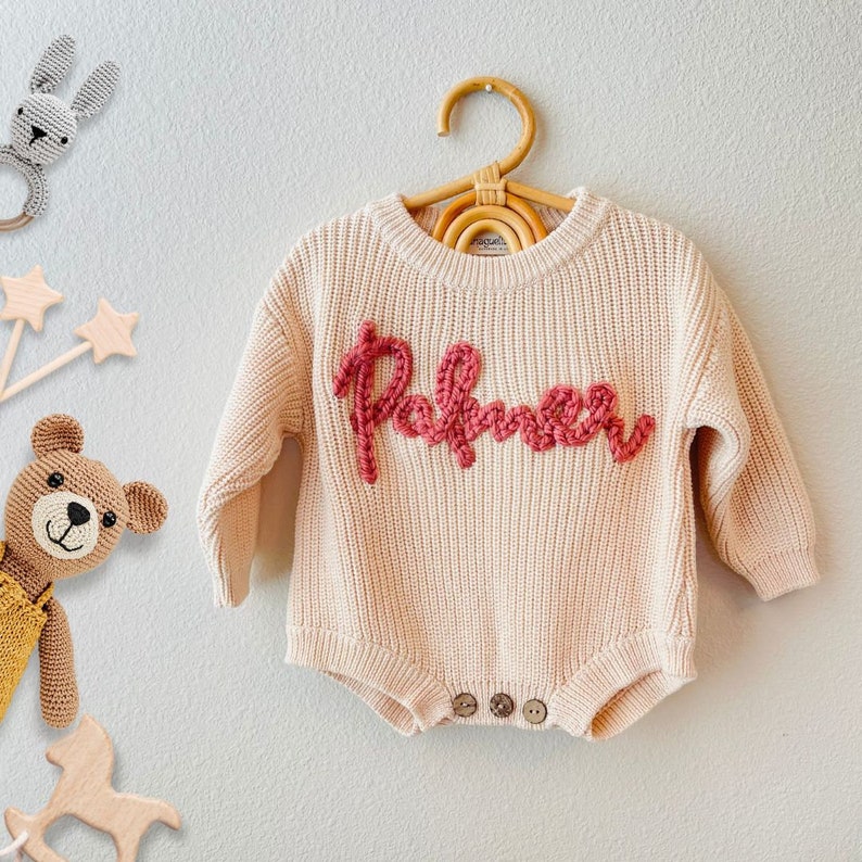 Embroidered Baby Romper Custom Knit Baby Name Bodysuit Gift for Newborn