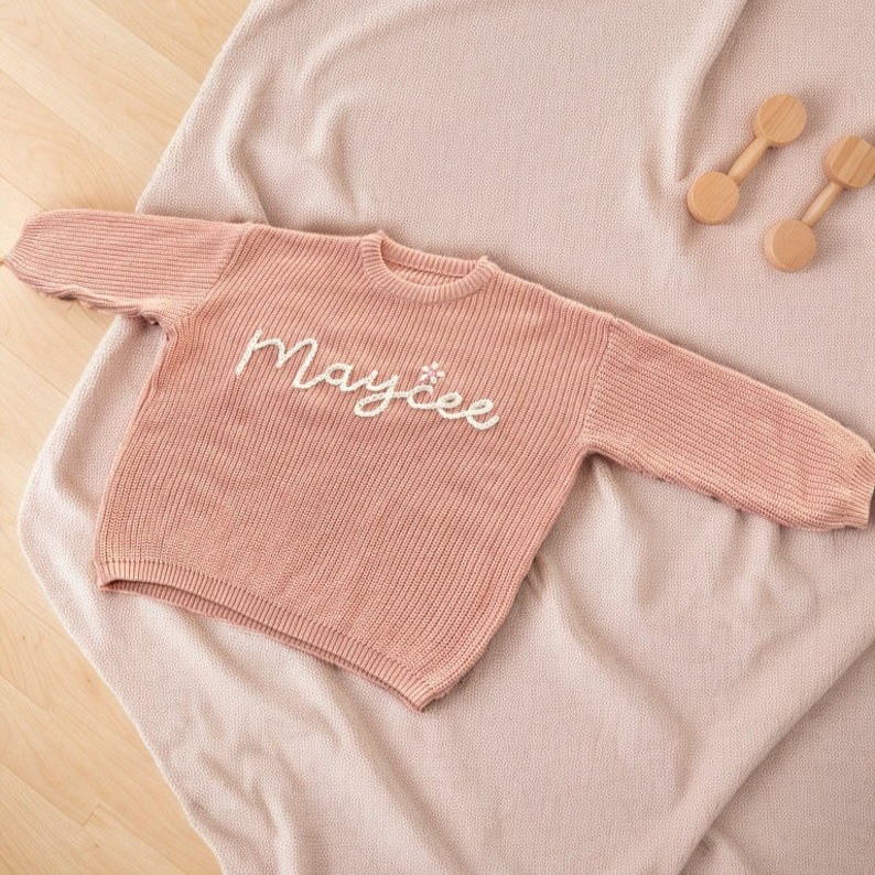 Embroidered Baby Sweater Custom Baby Girls Boys Sweater with Name Gift
