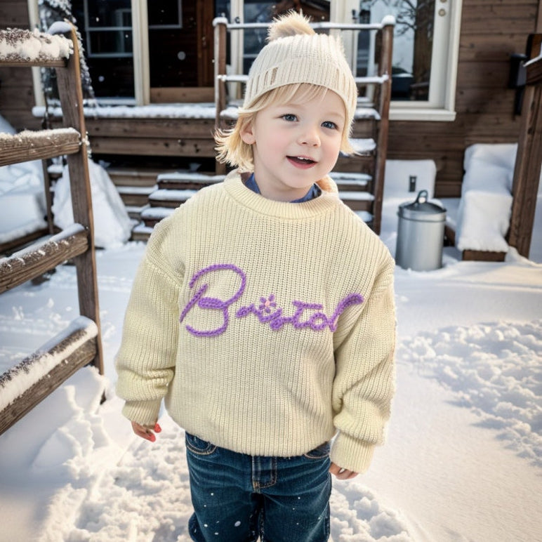 Perfect for both girls and boys, this soft and cozy sweater provides warmth and comfort. Ideal as a gift for baby showers, birthdays, or special occasions, it adds a unique, personal touch to their outfit. A thoughtful keepsake that will be cherished for years to come.