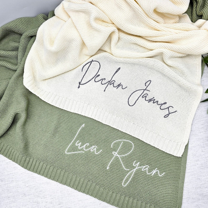 Knit Baby Blanket Breathable Embroidered Newborn Baby Name Stroller Blanket