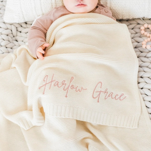 Keep your little one cozy and stylish with our breathable knit baby blanket! Perfectly designed for newborns, this blanket combines softness and warmth while allowing for airflow, making it ideal for year-round use. Personalize it by adding your baby.s name, beautifully embroidered for a special touch.