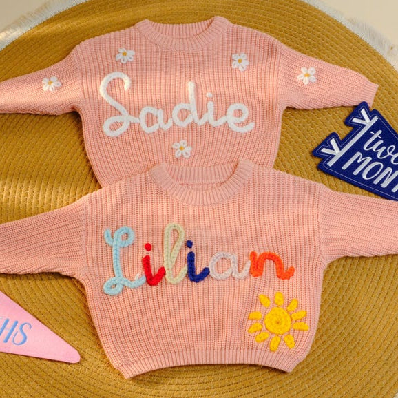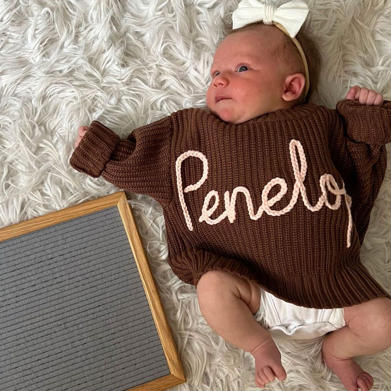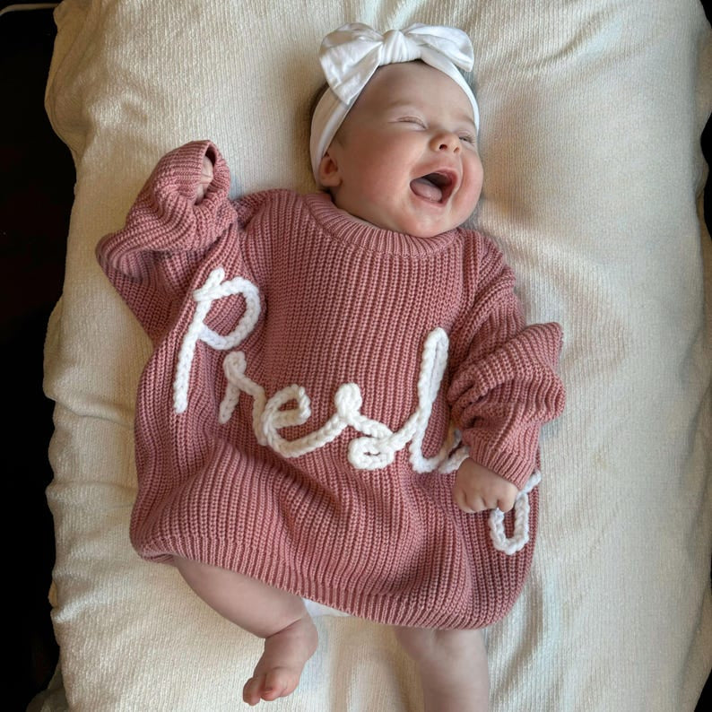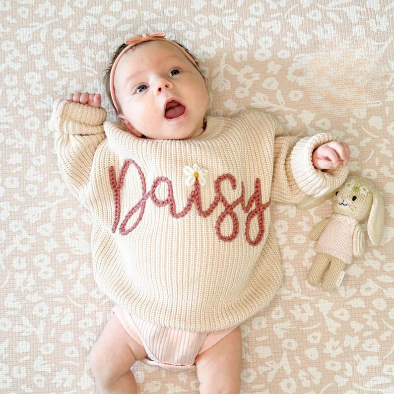 Newborn Sweater Custom Hand Embroidered Baby Sweater with Name