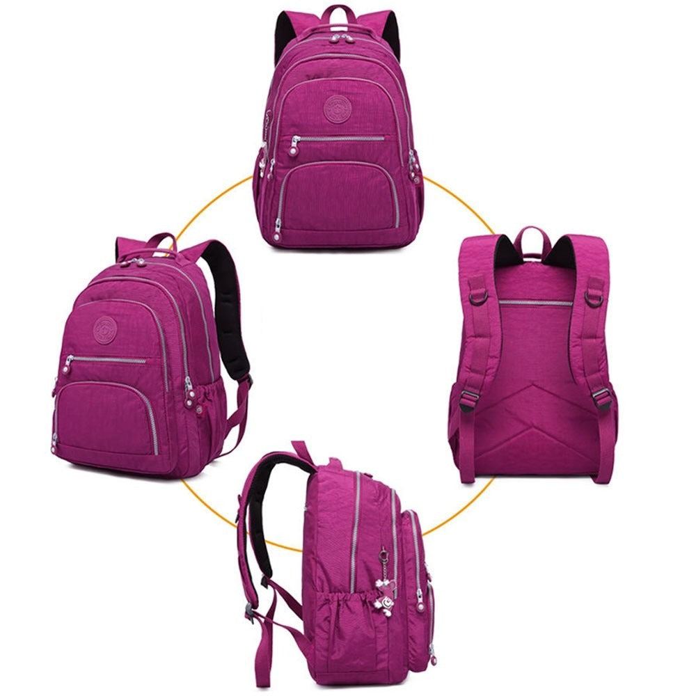 Nylon Backpack with Multi-Compartment for School Women Large Capacity Book Bag Travel Daypacks