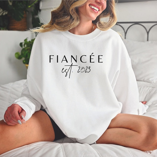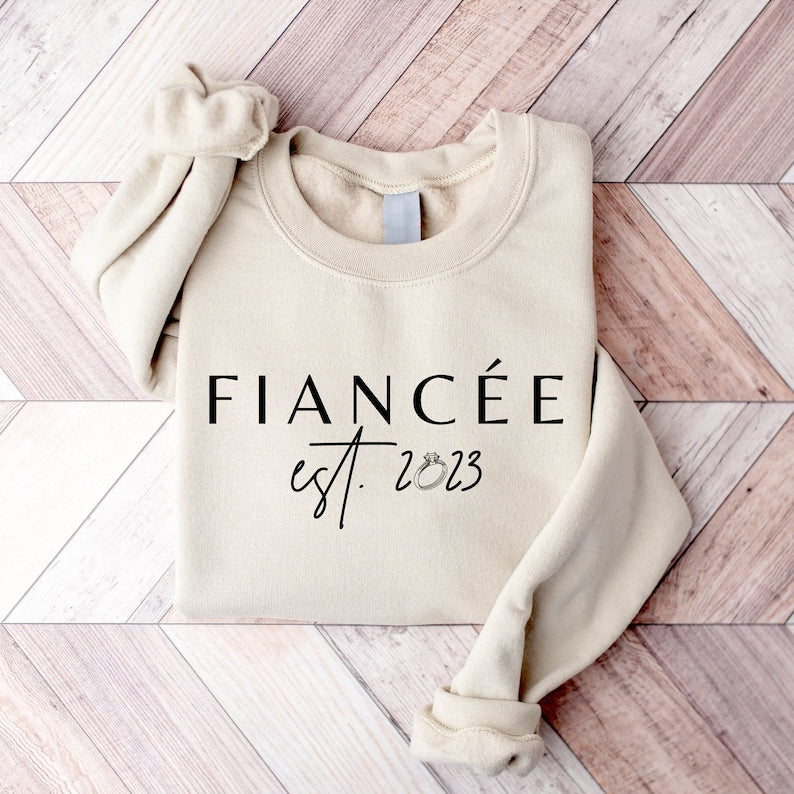 Make your engagement special with our Personalize Feyoncée Est Sweatshirt! This sweatshirt is perfect for fiancées, featuring a personalized 'Est' with the year of your engagement. Whether it's for a bridal shower, engagement party, or as a wedding gift, this sweatshirt celebrates your journey to becoming a bride.