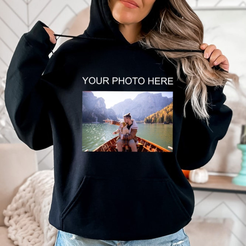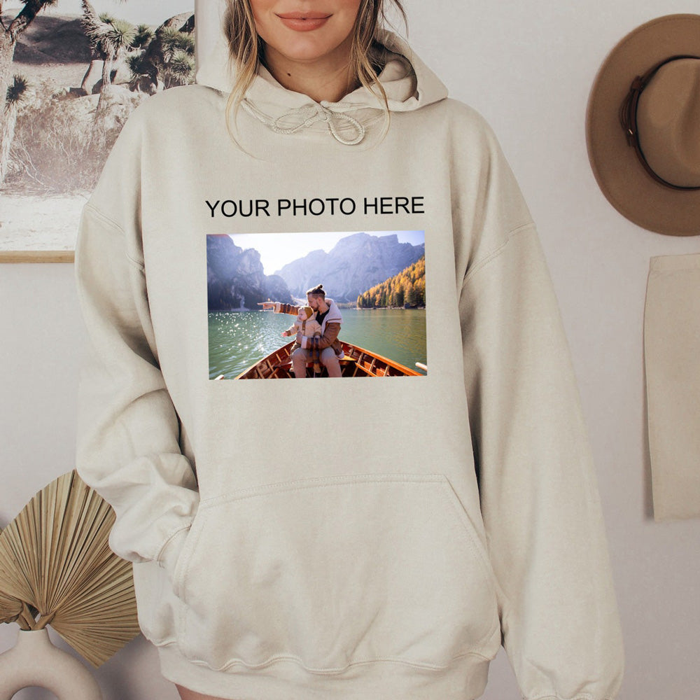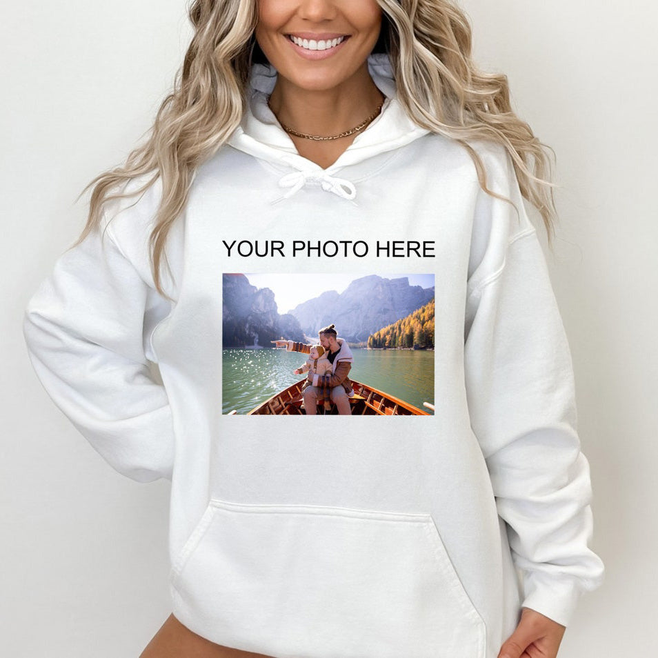 Personalized Add Your Own Photo & Text Hoodie Custom Photo Pullover Gift for Friend & Family