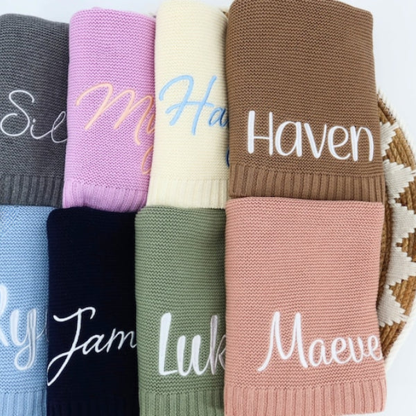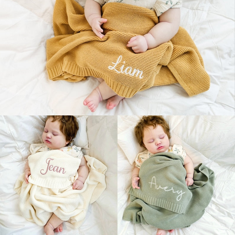 Personalized Baby Blanket Embroidered Knit Newborn Baby Name Blanket