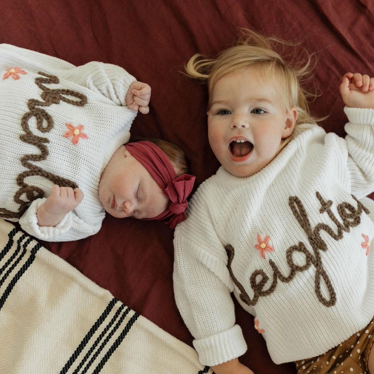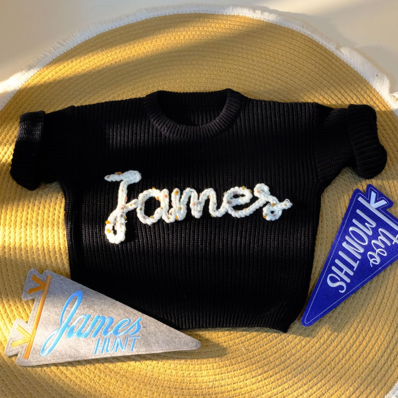Personalized Baby Hand Embroidered Sweater Custom Newborn Birthday Sweater Gift