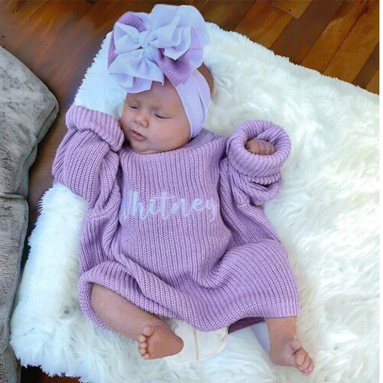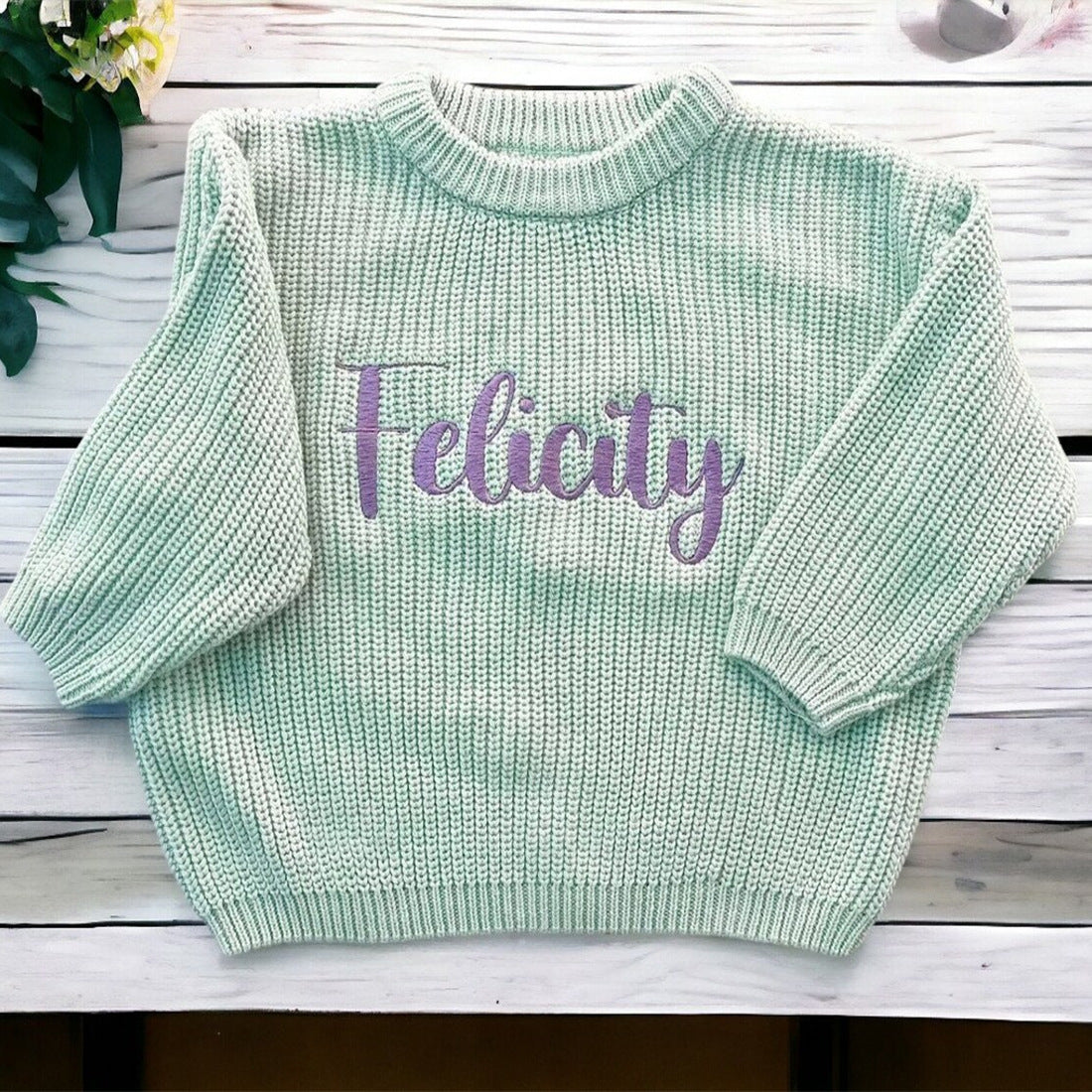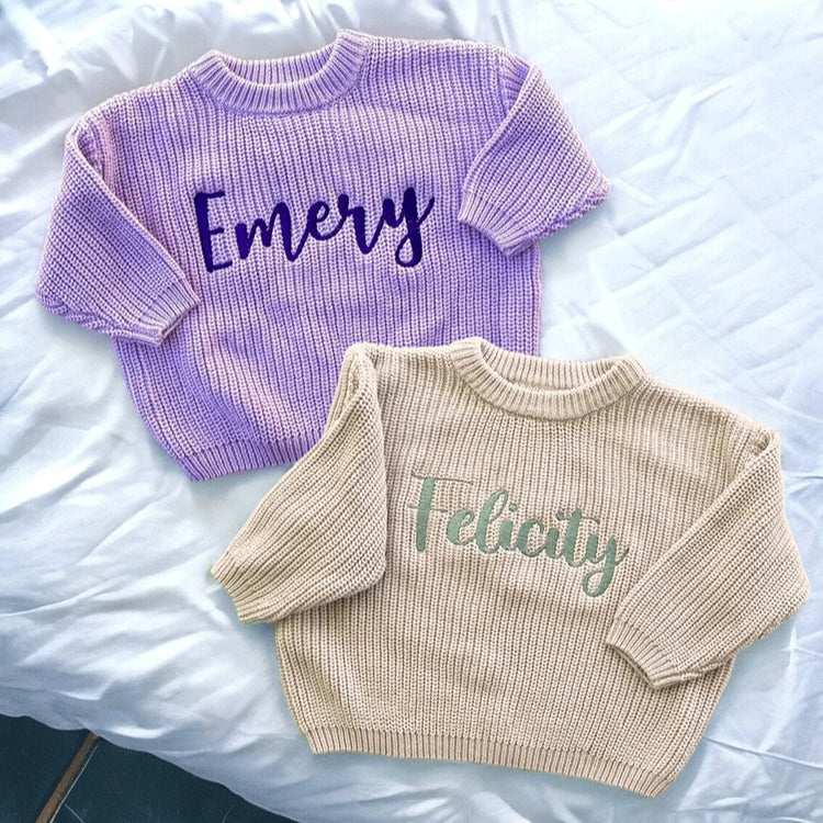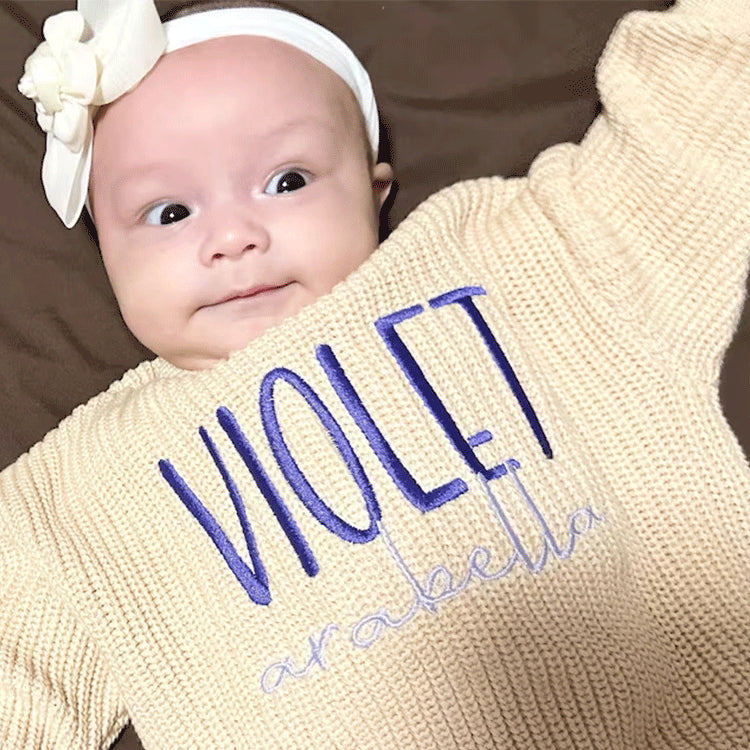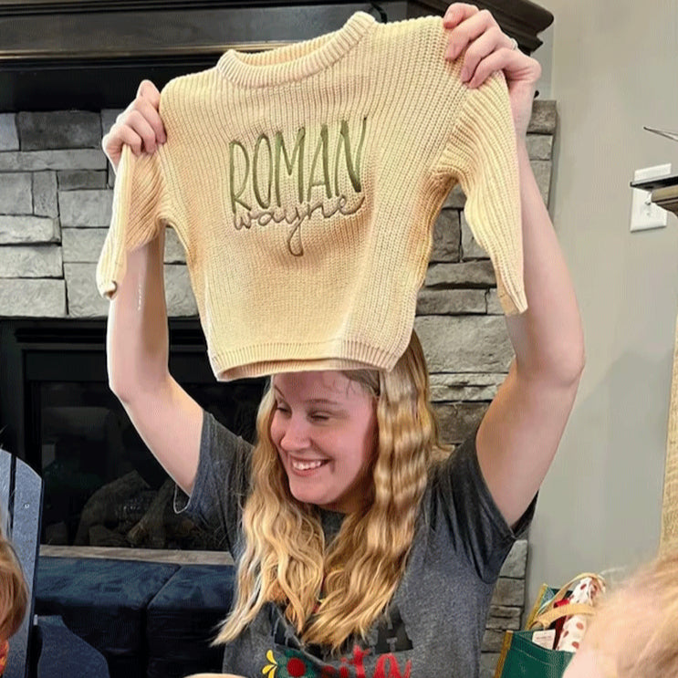 Personalized Baby Sweater Custom Embroidered Toddler Knit Chunky Sweater