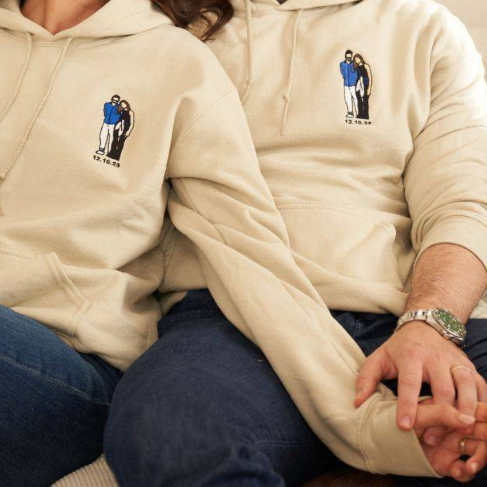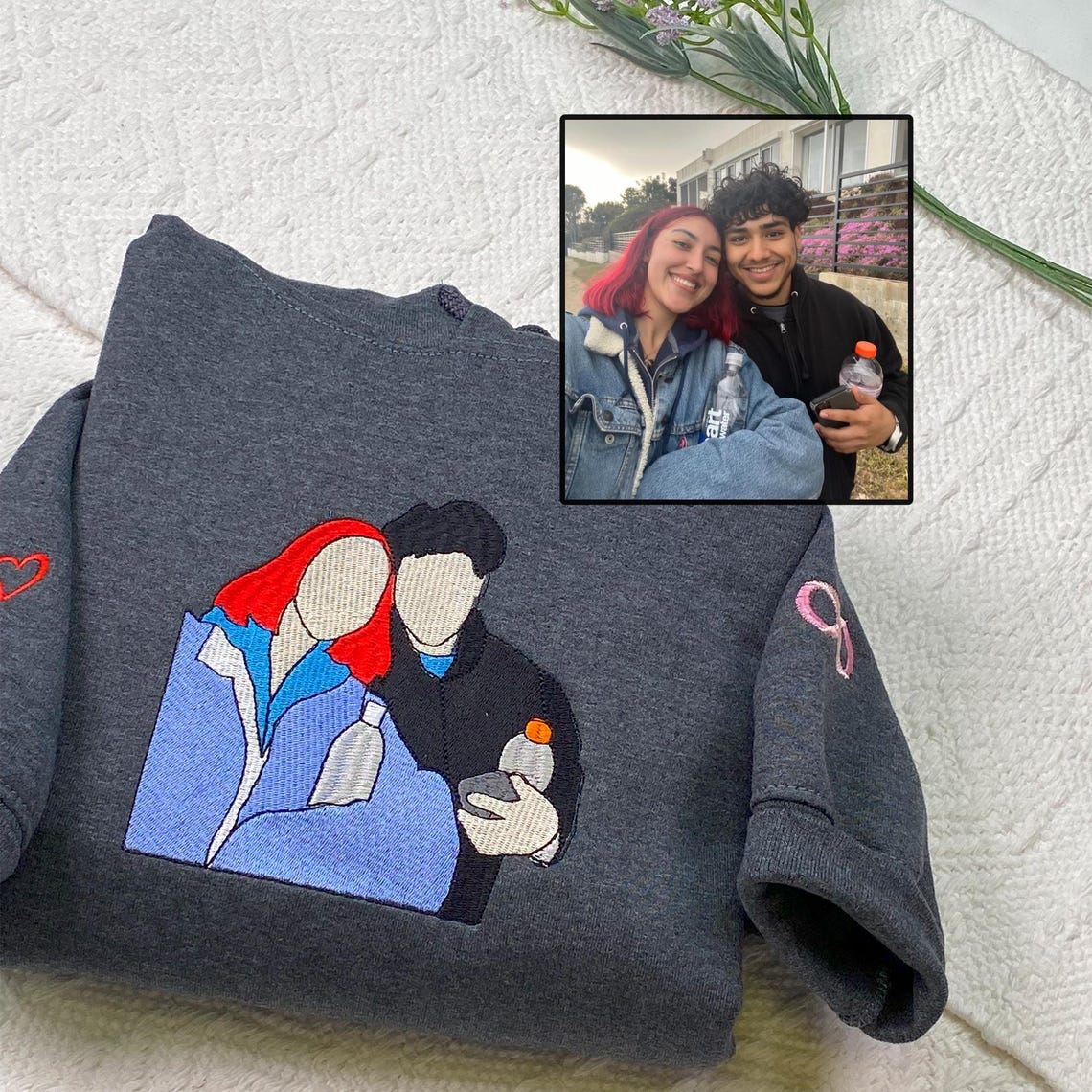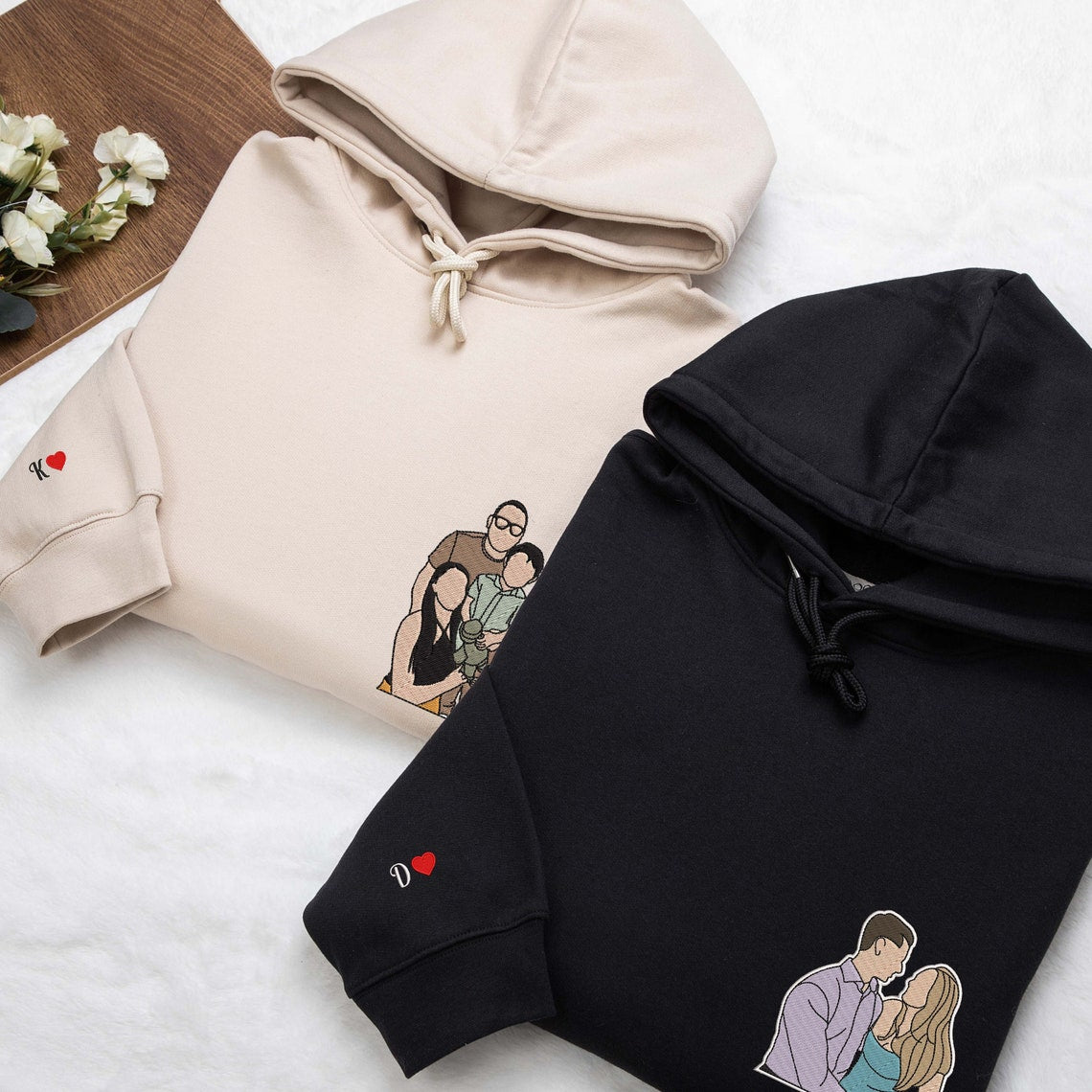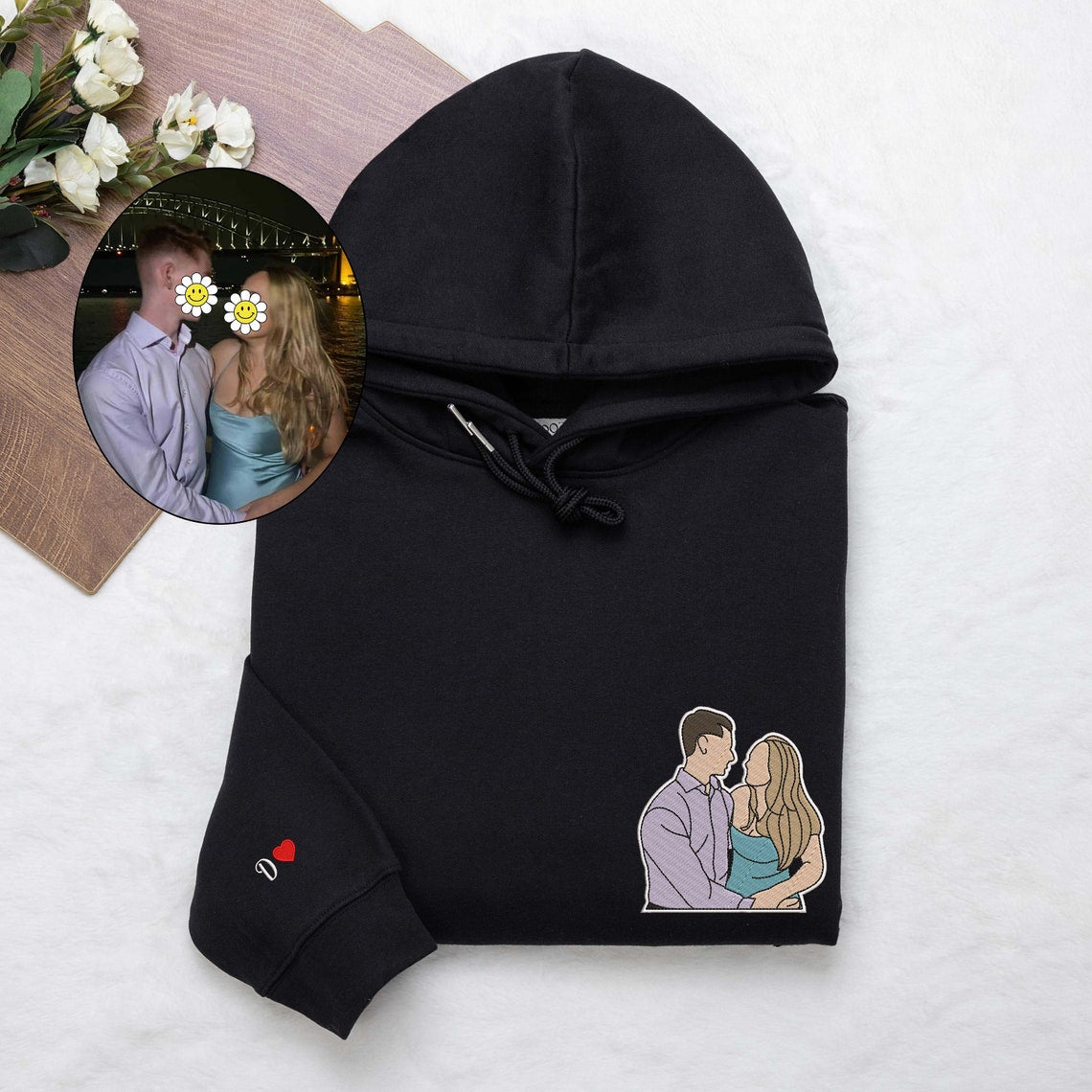 Custom Embroidery Hoodie Personalized Couple Portrait from Photo Hoodie Unique Gift for Lover & Family