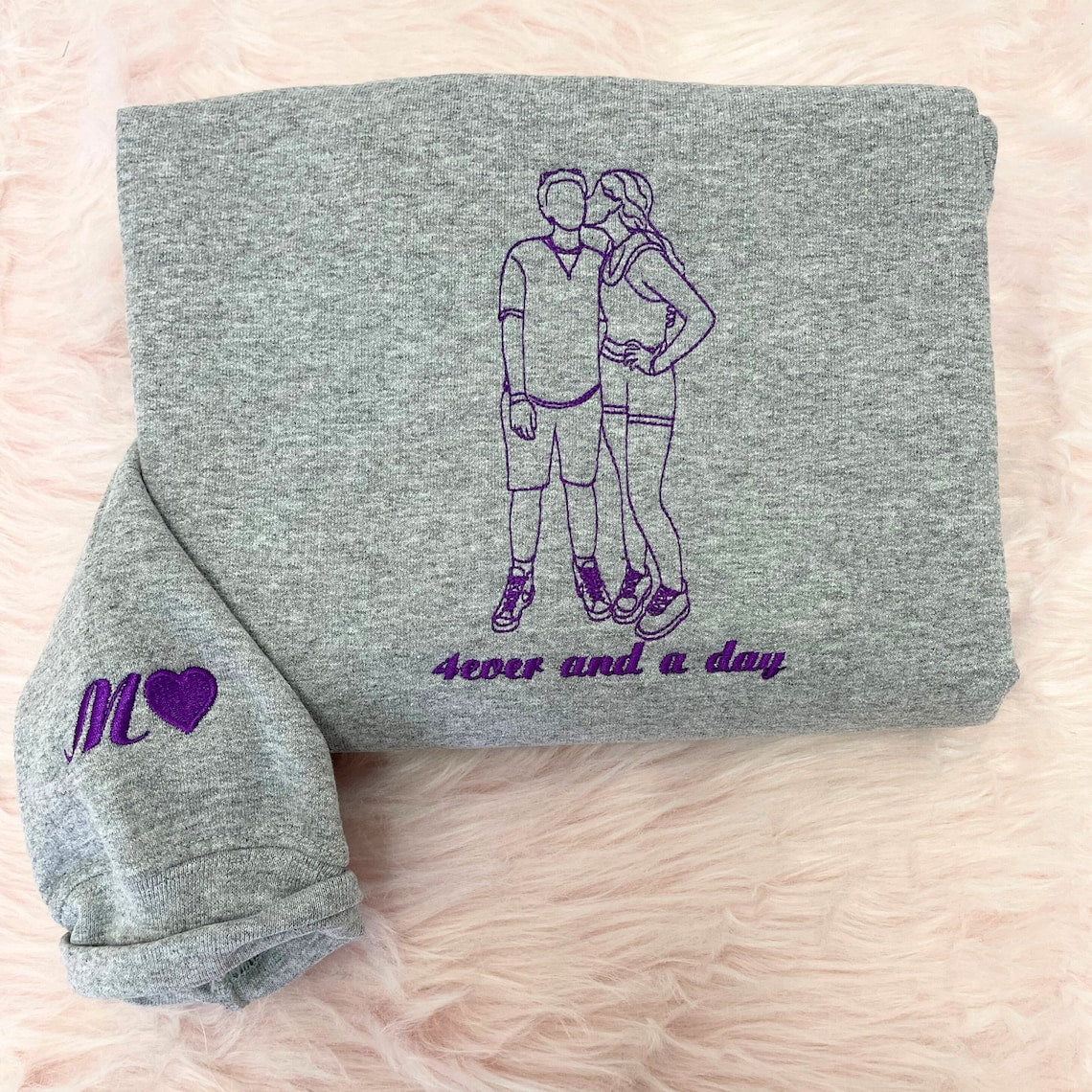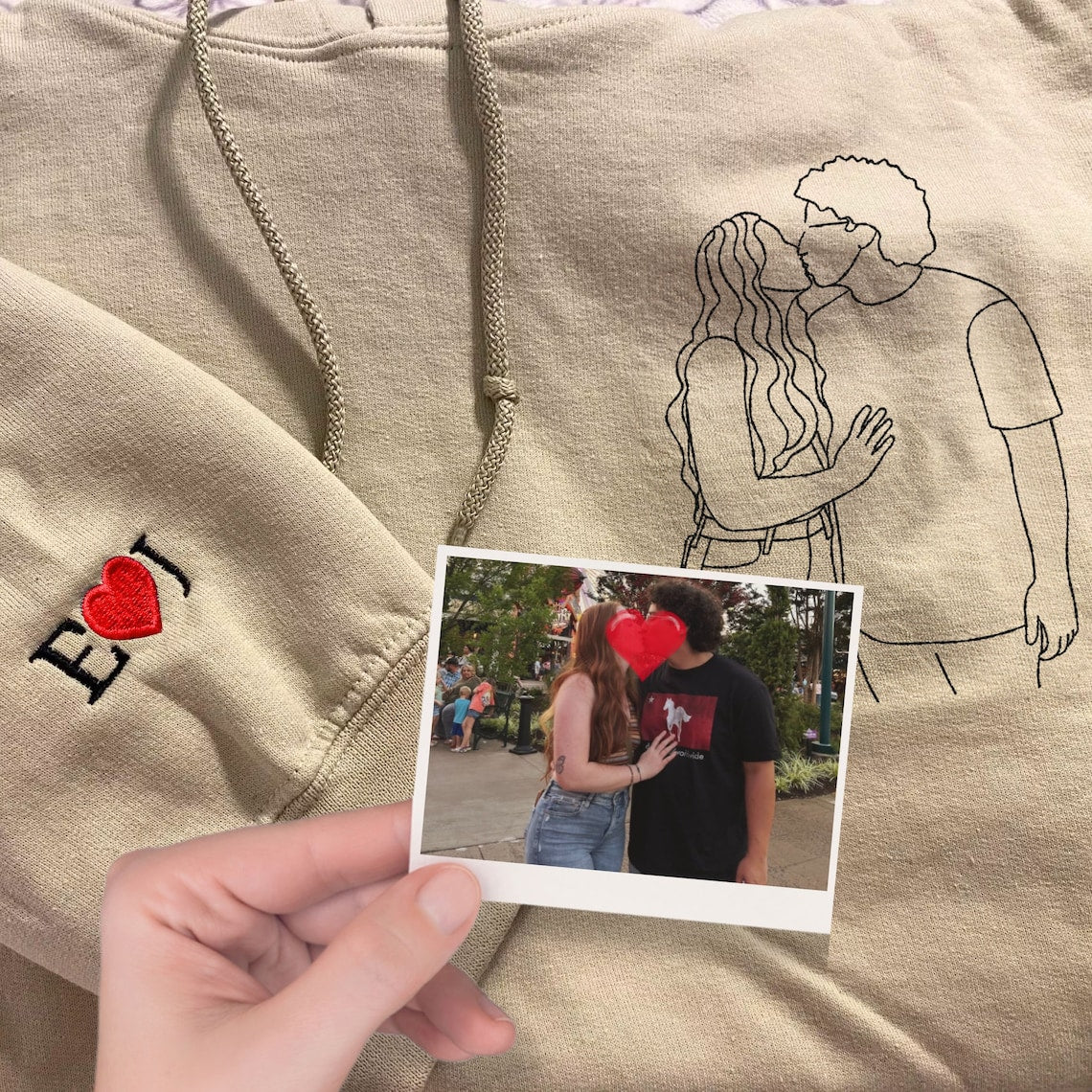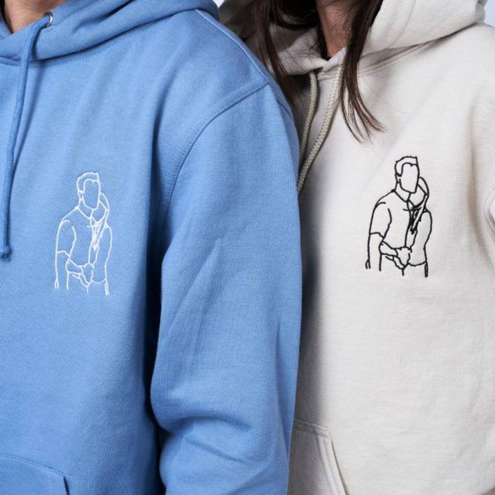 Embroidered Couple Hoodie Custom Couple Photo Portrait Hoodie Gift for Lover & Family