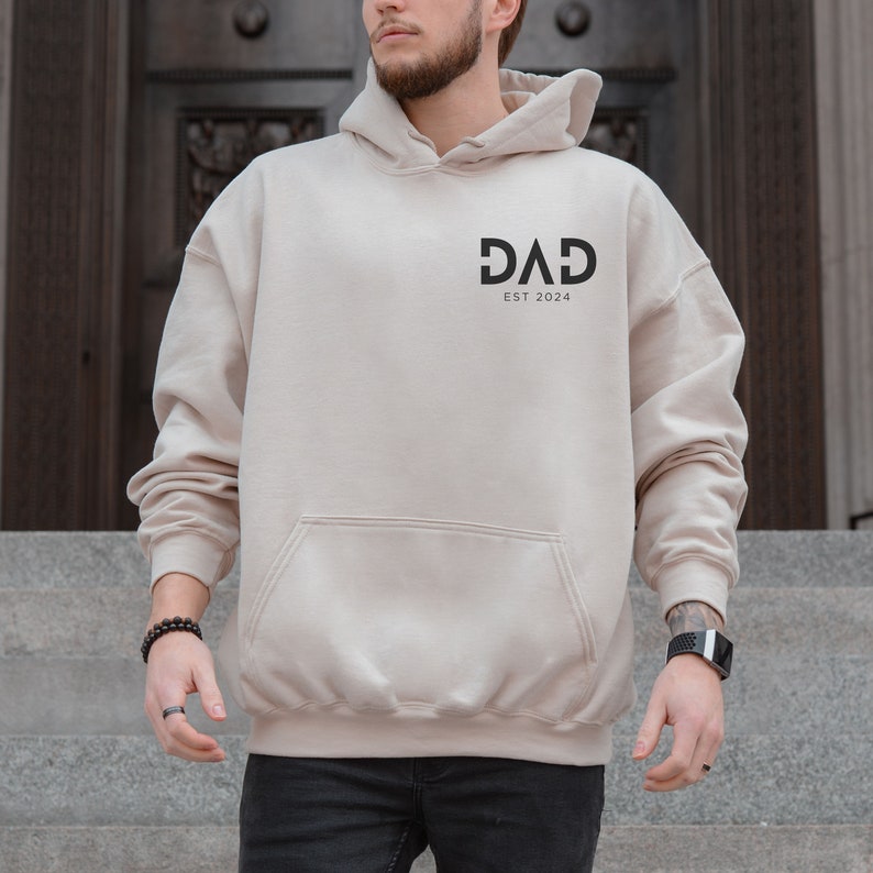 Celebrate Father's Day in style with our Personalized Dad with Est Time Sweatshirt. Made from premium cotton blend, this multicolor, crewneck, drop-shoulder design offers comfort and customization for daily wear.