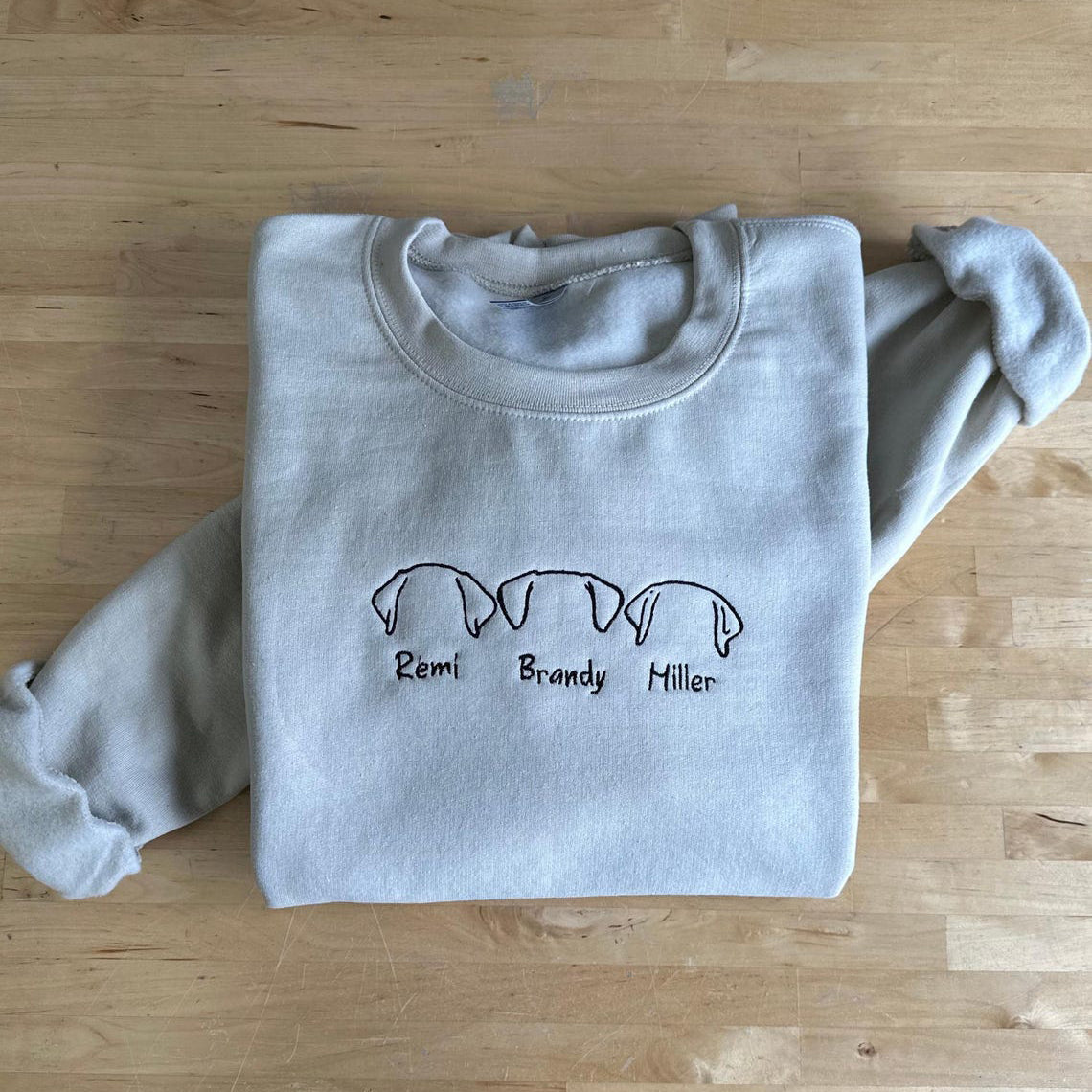 Personalized Pet Sweatshirt Custom Embroidered Dog Ears with Name Sweatshirt For Pet Lovers
