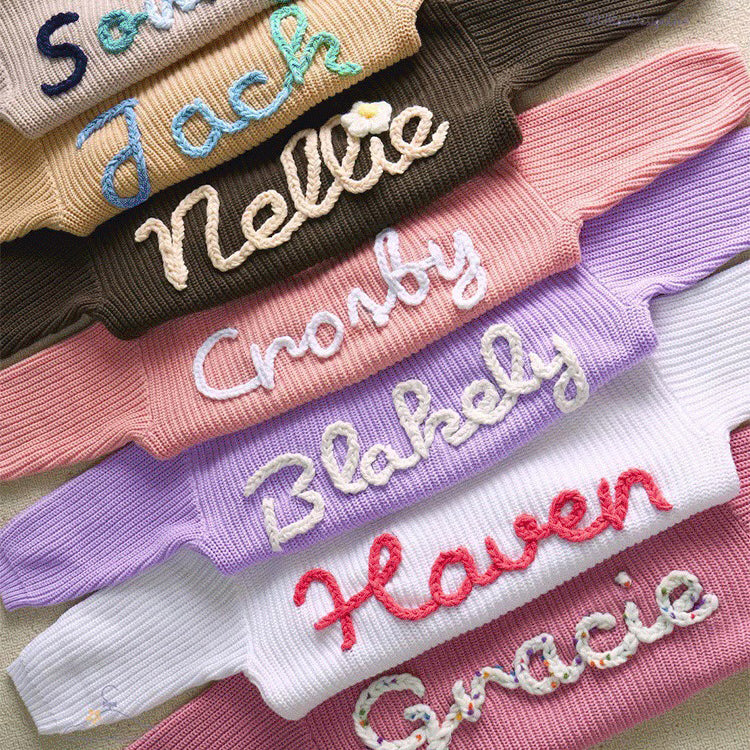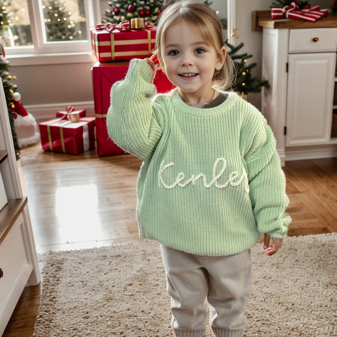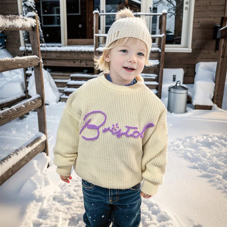 Personalized Embroidered Baby Sweater Custom Kids Name Knit Chunky Sweater