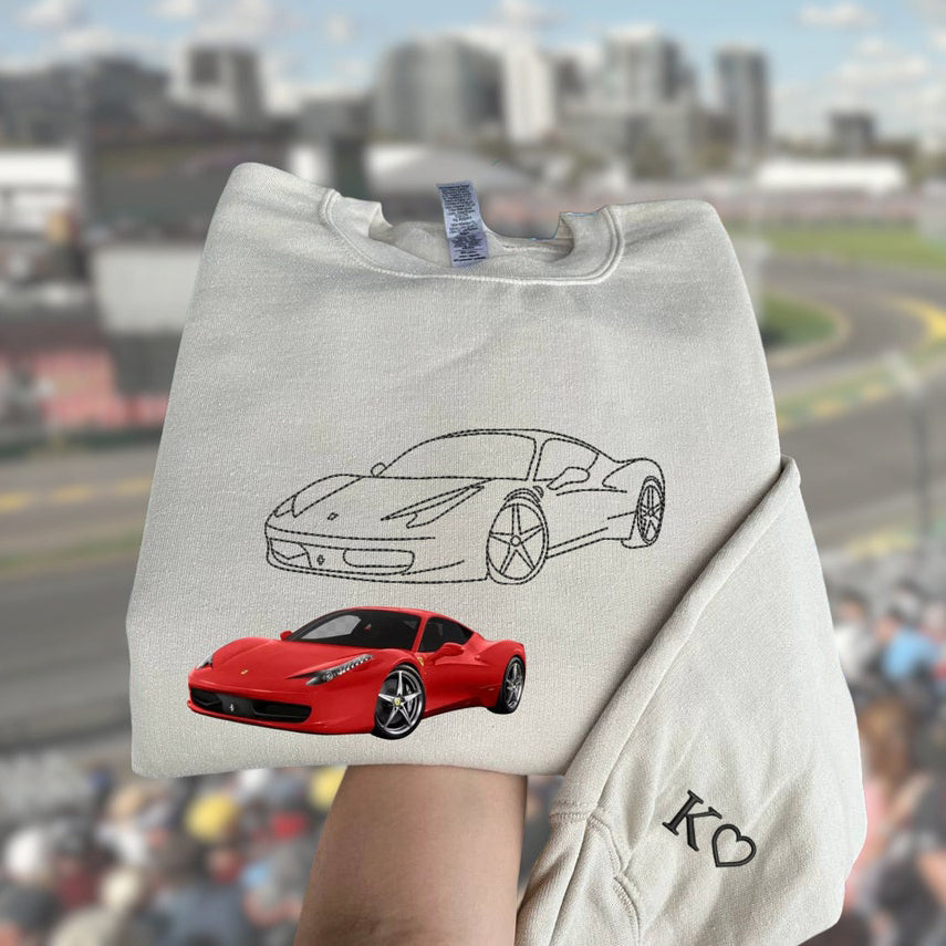 Custom Car Photo Sweatshirt Personalized Embroidered Car Outline Sweatshirt Gift