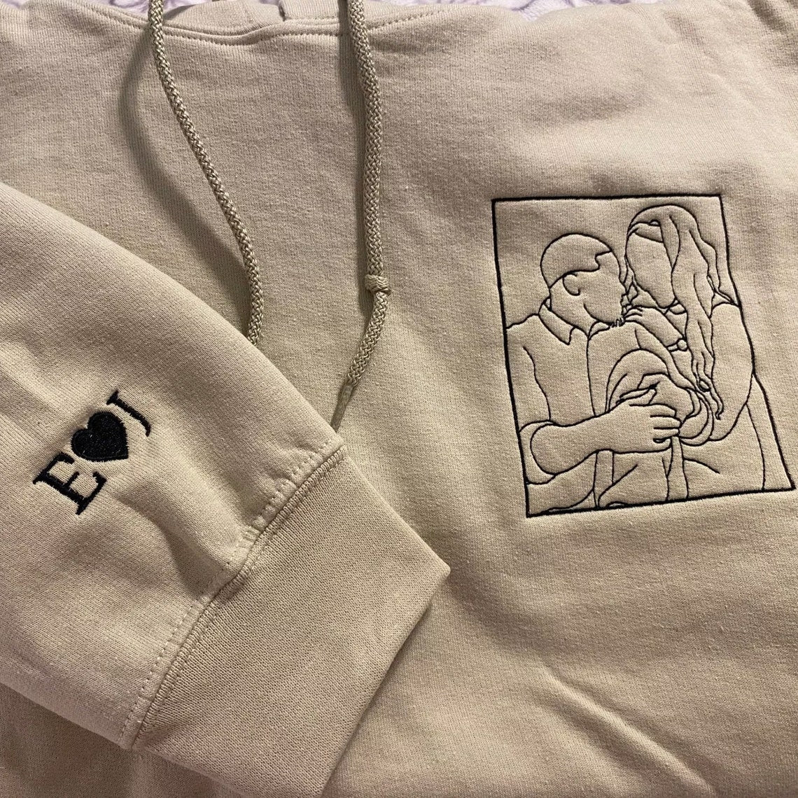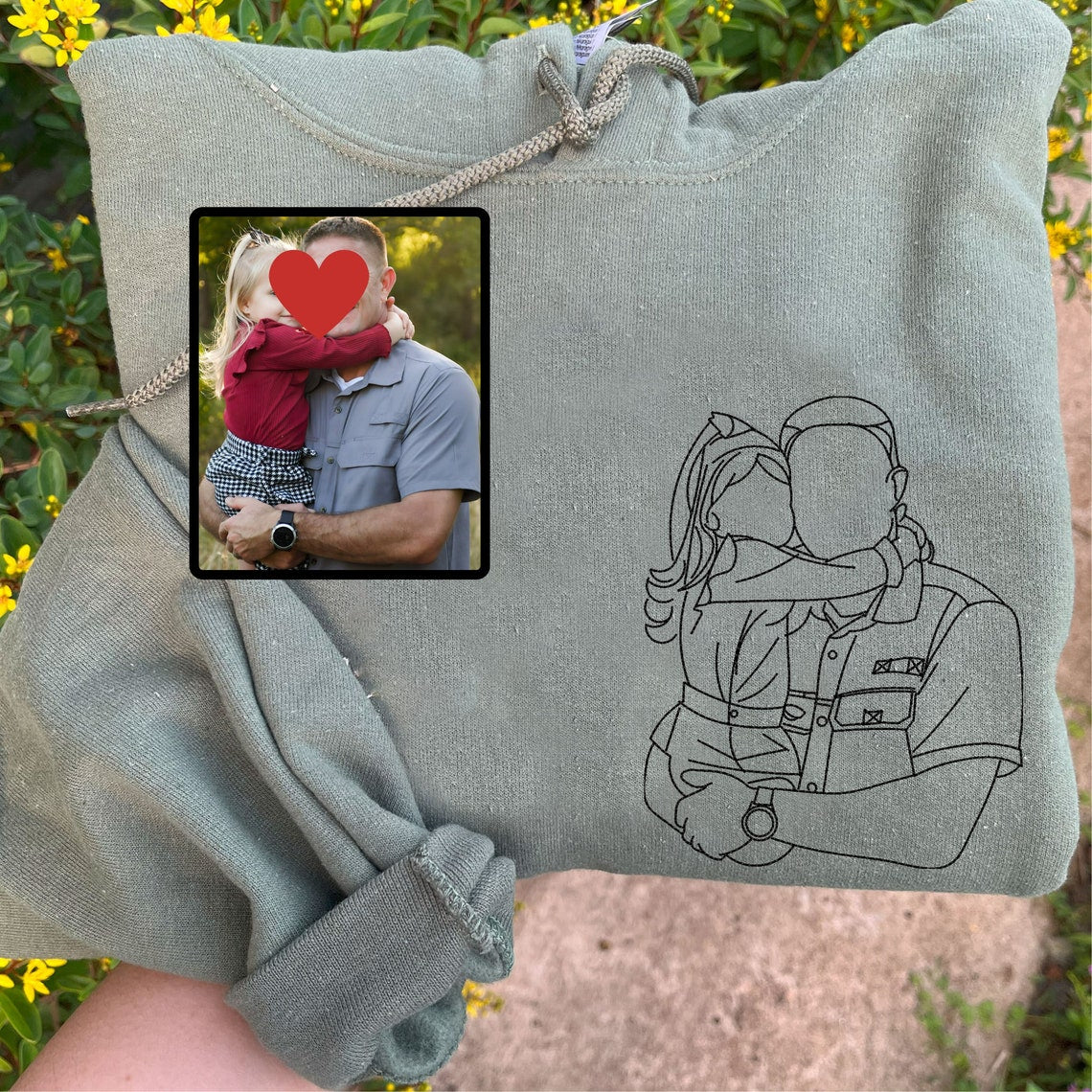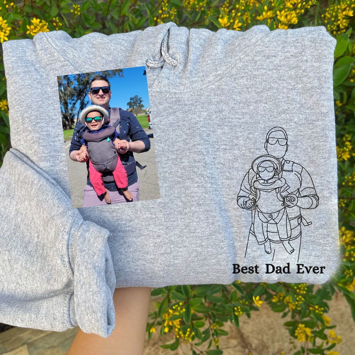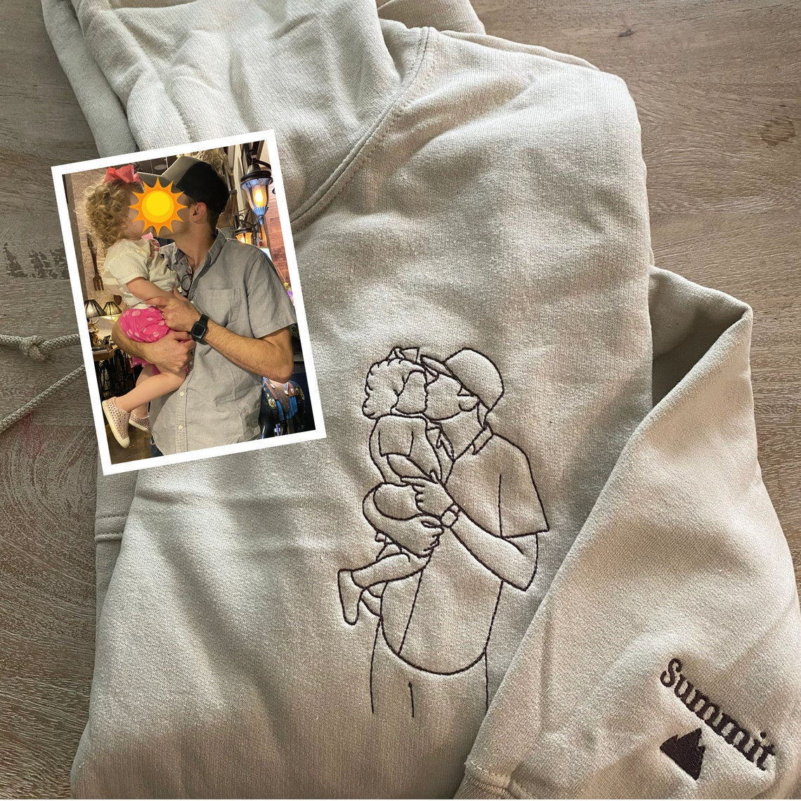 Personalized Embroidered Dad & Kids Portrait from Photo Hoodie Custom Gift For Dad, Mom, Couple