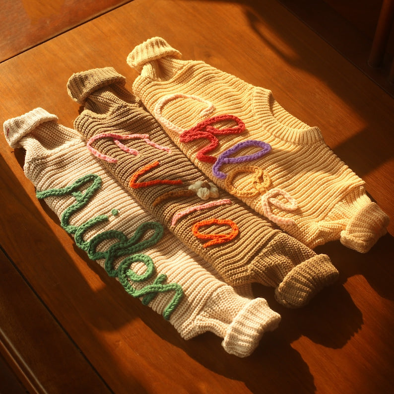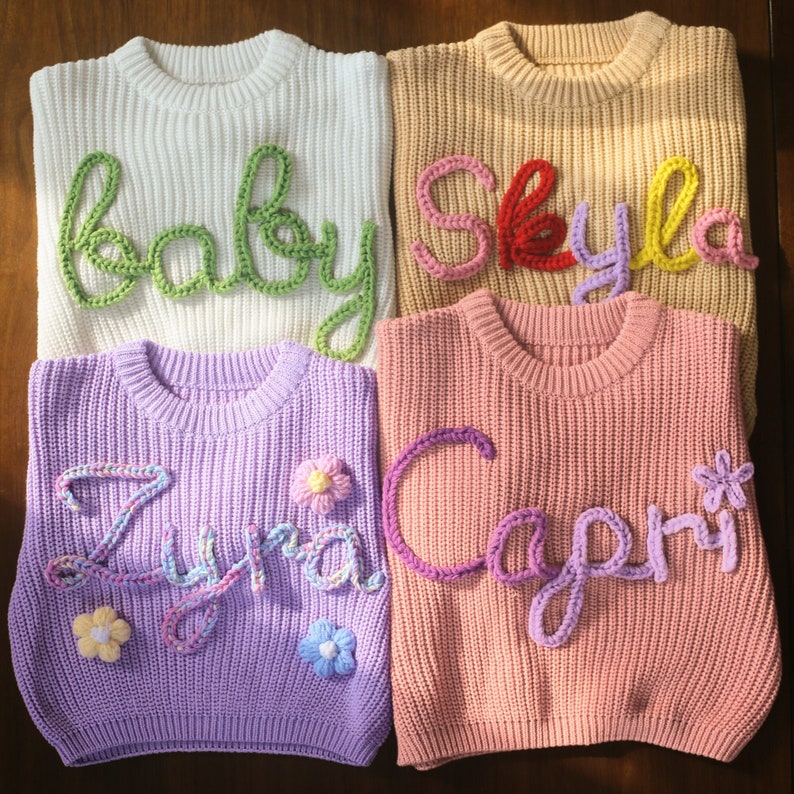 Personalized Hand Embroidered Toddler Sweater Custom Baby Name Sweater Gift
