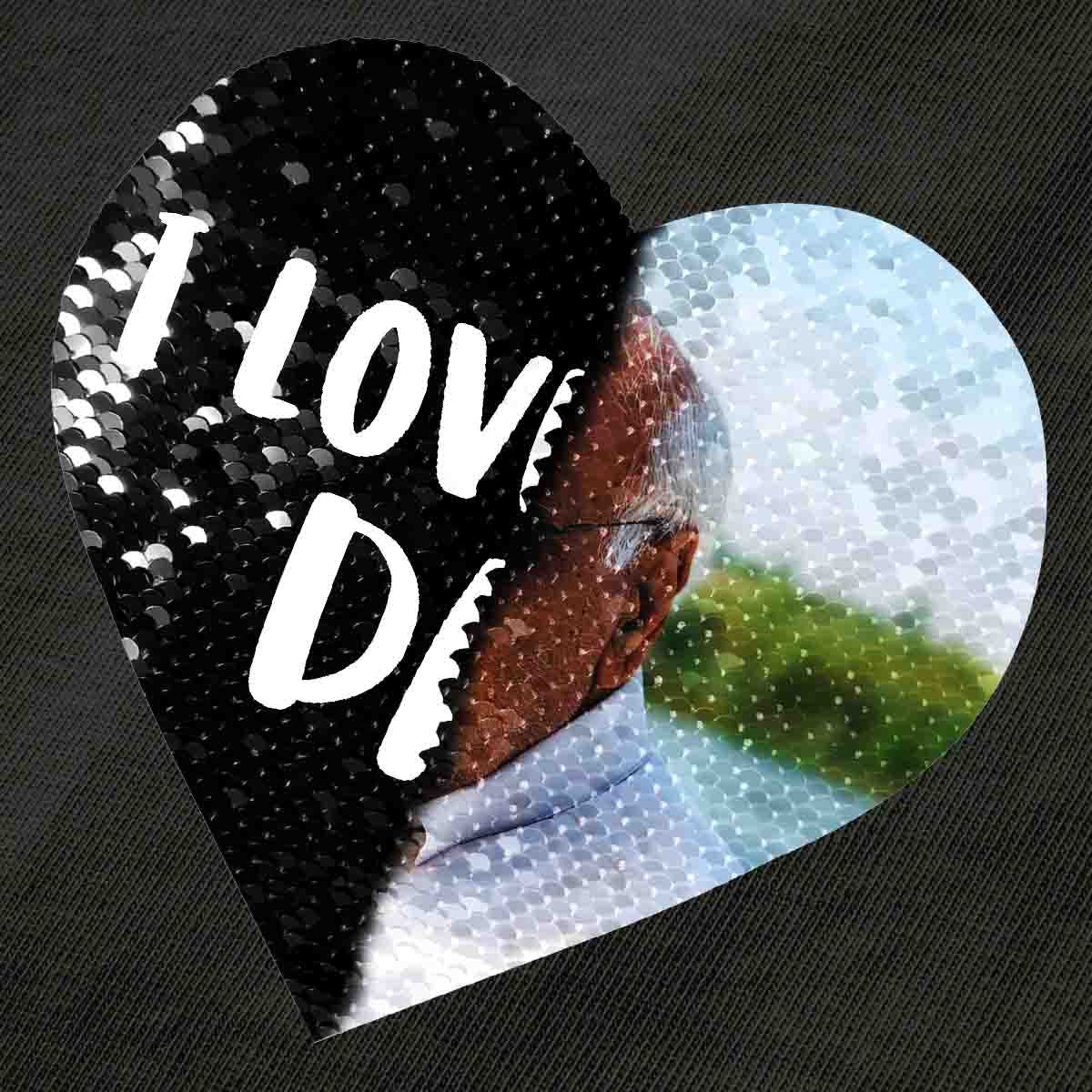 Express your love for Dad with our Personalized I Love You Dad Photo Flip Sequin Hoodie. Crafted from a cozy cotton-poly blend, this stylish hoodie features a hooded neck, long sleeves, and is available in white, black, and grey. Perfect for daily wear, sizes S-2XL.