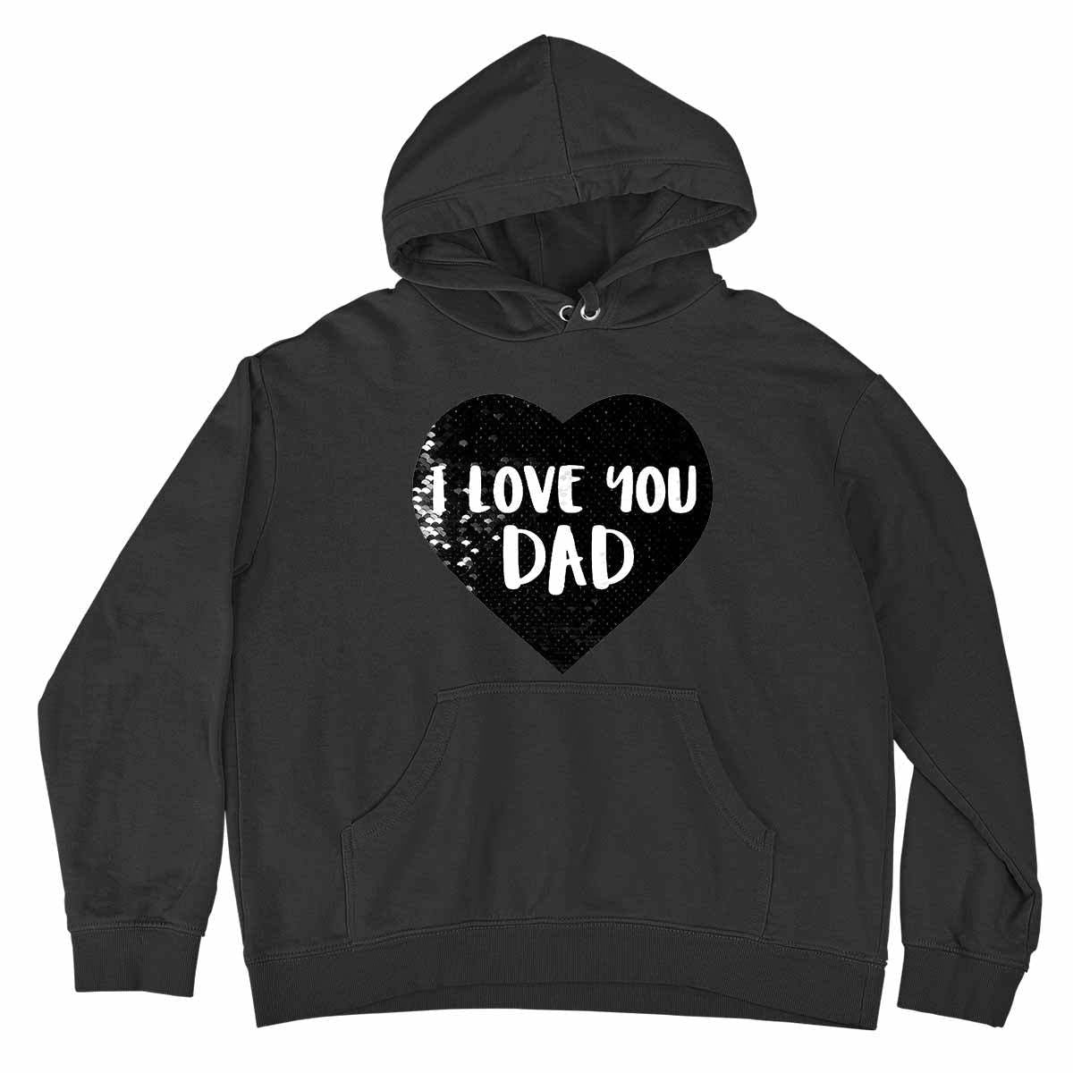 Personalized Sequin Hoodie Custom Flip Sequin I Love You Dad Pullover Unique Gift for Family