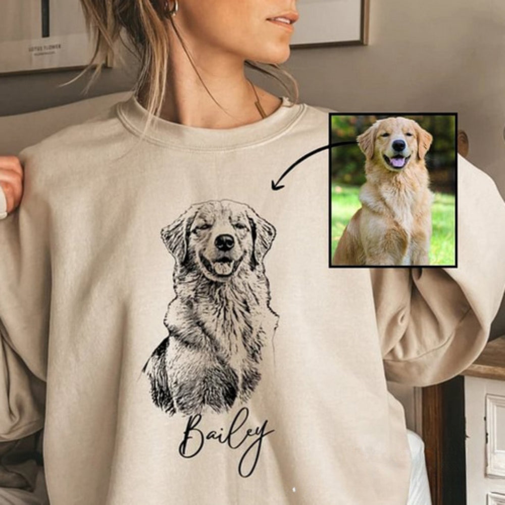 Personalized Pet Sweatshirt Custom Dog Portrait from Photo Sweatshirt Gift for Pet Lovers