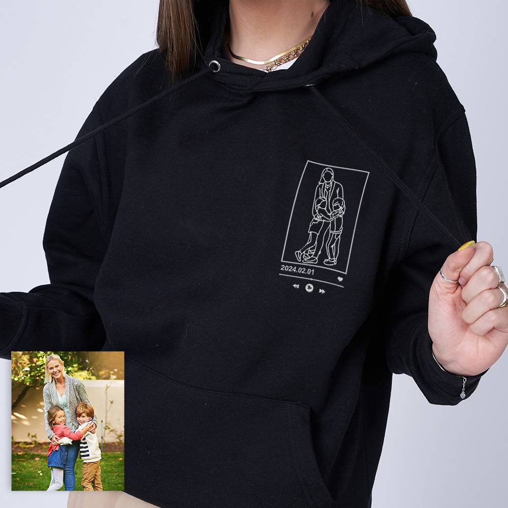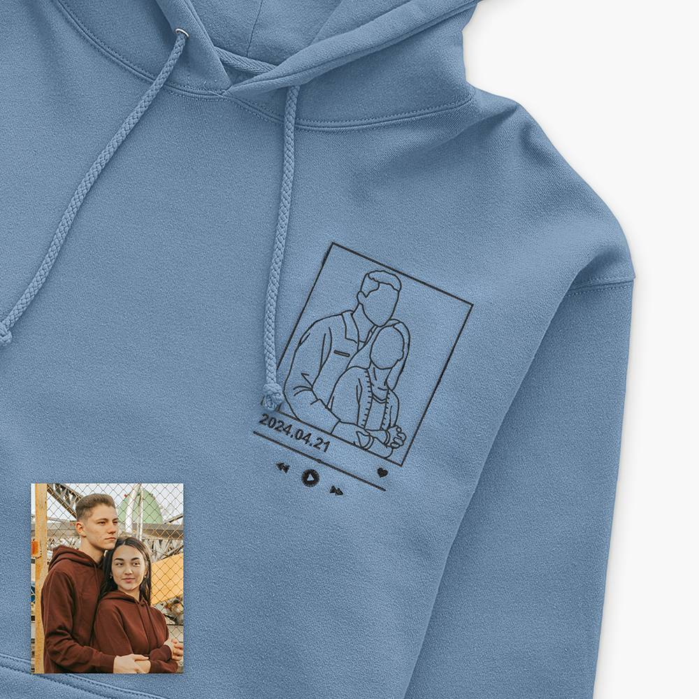 Custom Embroidered Spotify Hoodie Personalized Couple Photo Portrait Outline Music Album Hoodie