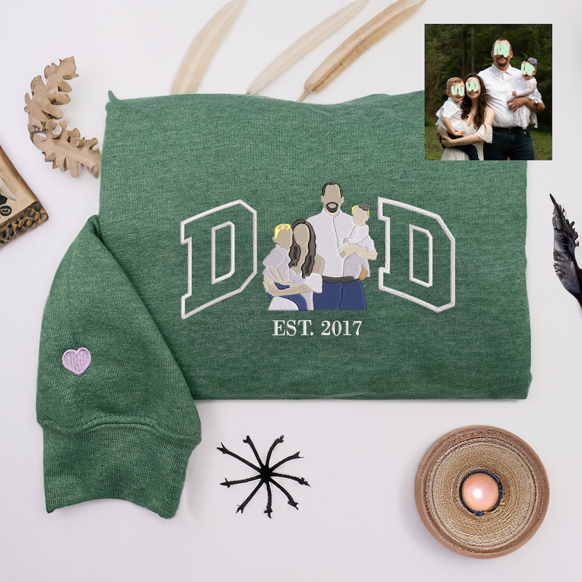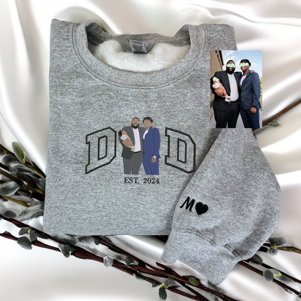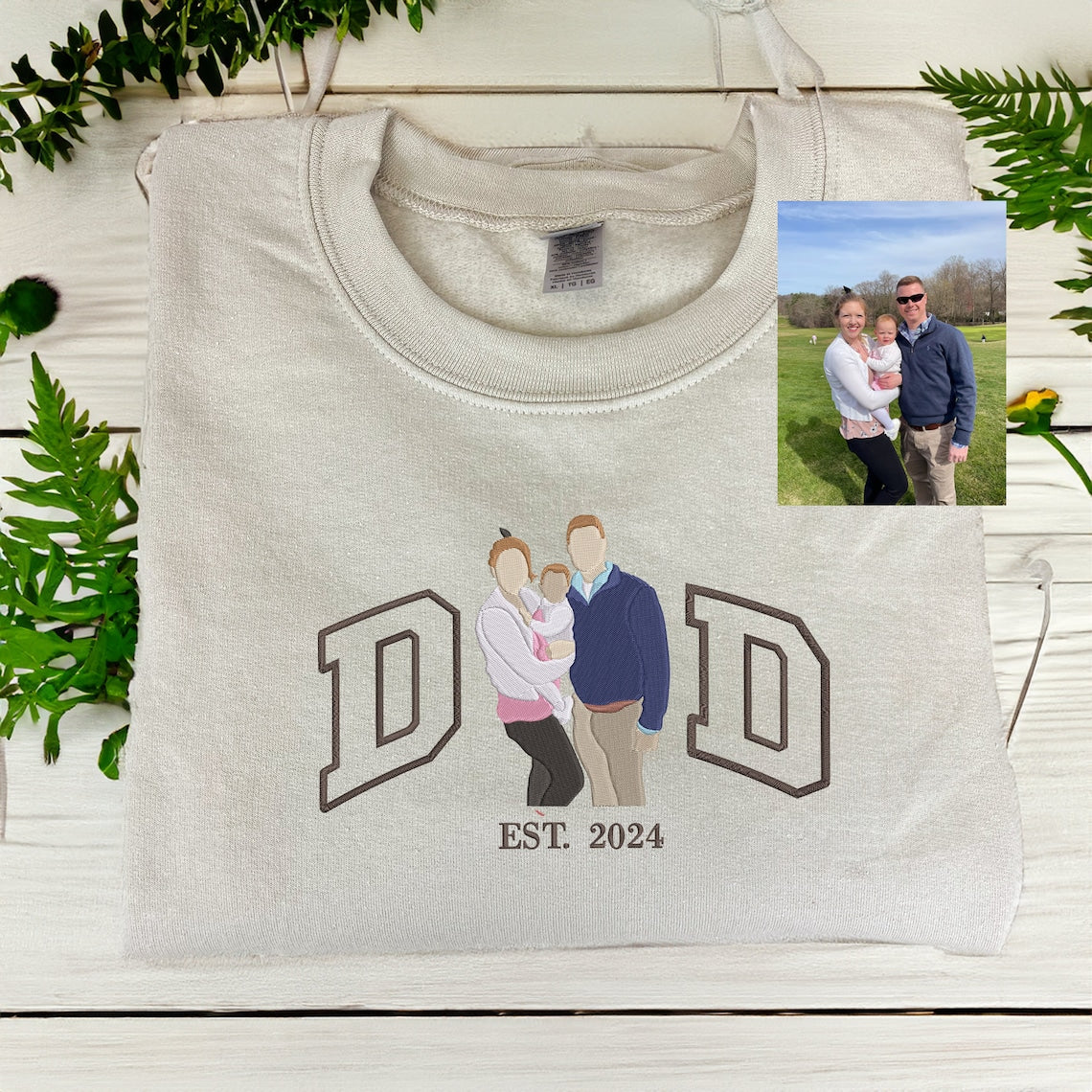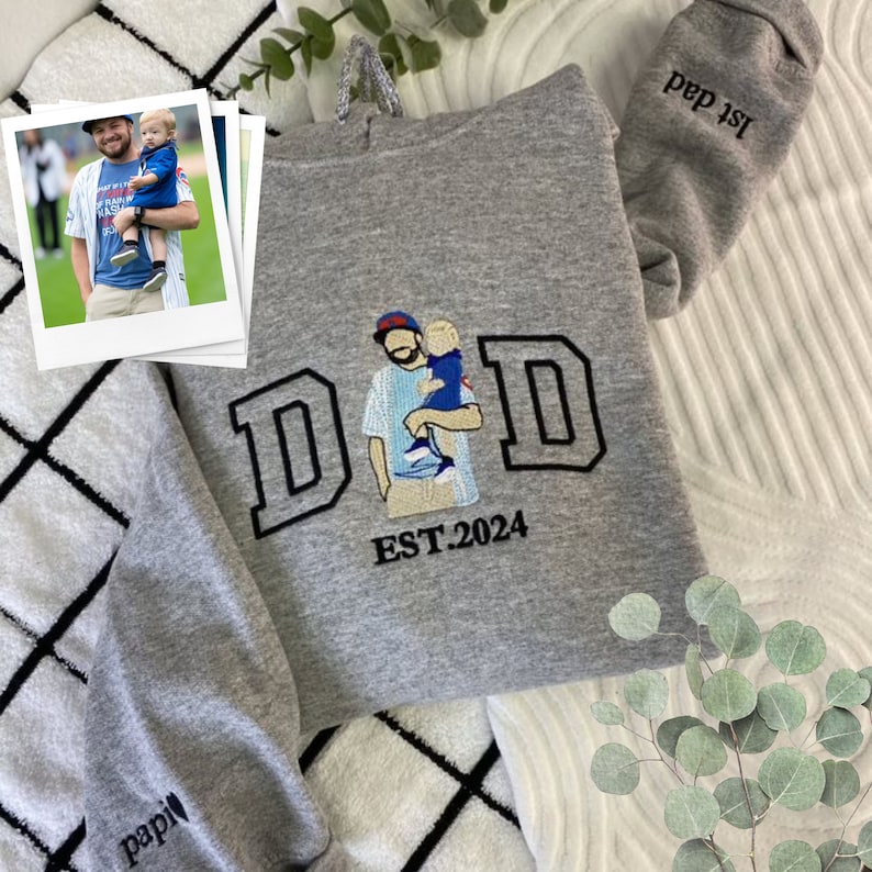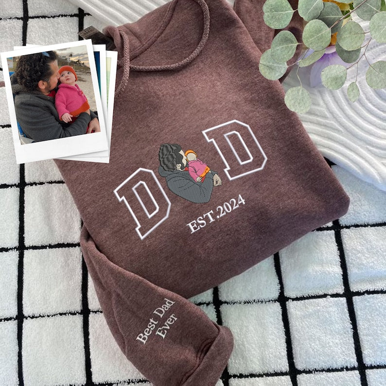 Custom Dad Sweatshirt Embroidered Family Portrait from Photo Sweatshirt Personalized Gift for Father's Day
