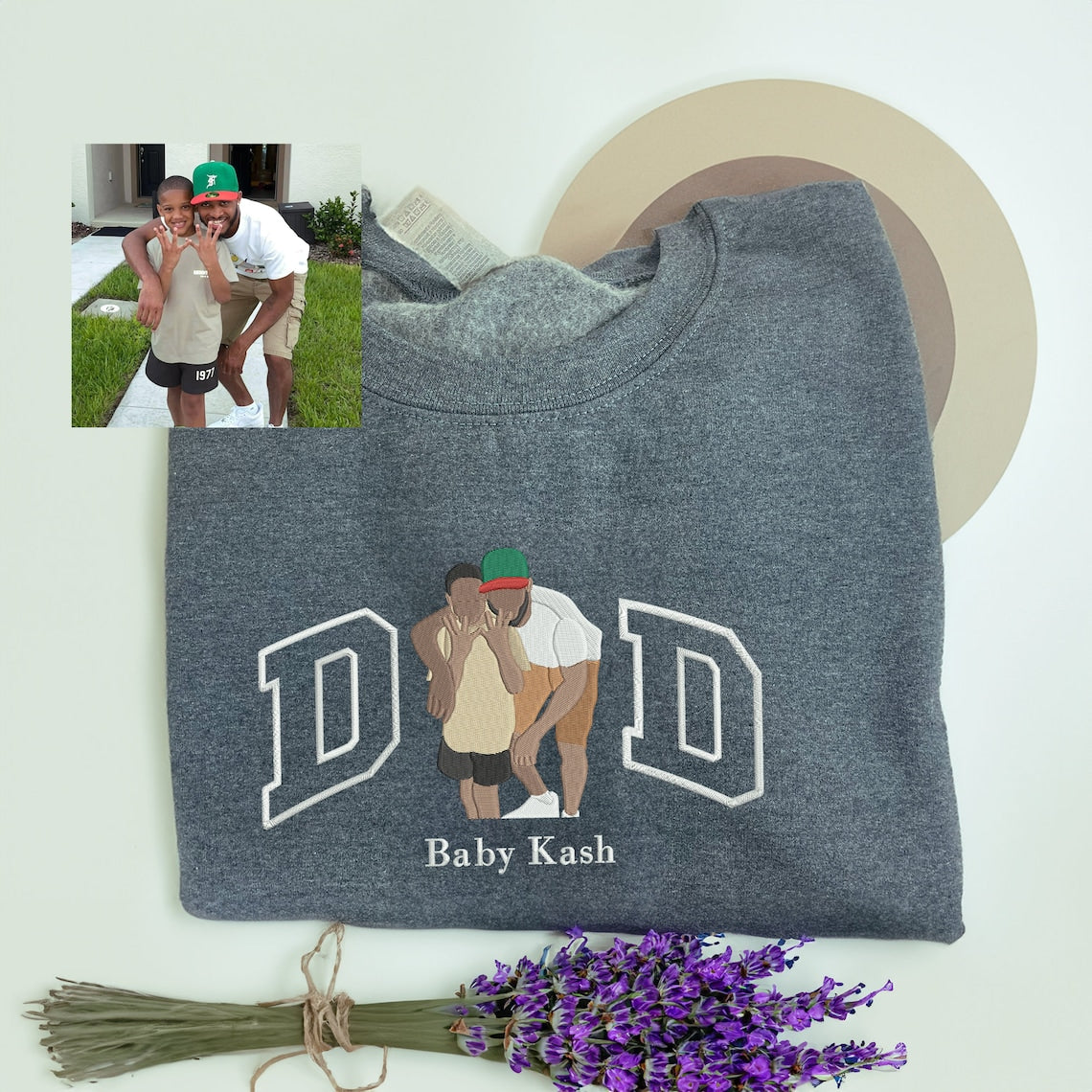 Give Dad the ultimate personalized gift with our embroidered portrait sweatshirt. Crafted from premium cotton blend, featuring drop shoulder design for comfort.