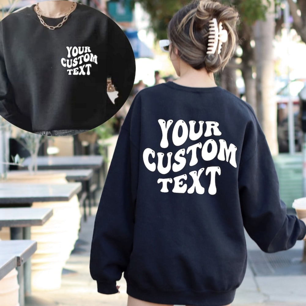 Custom Wavy Text Sweatshirt Funny Personalized Vocation Mode Text Printed Sweatshirt