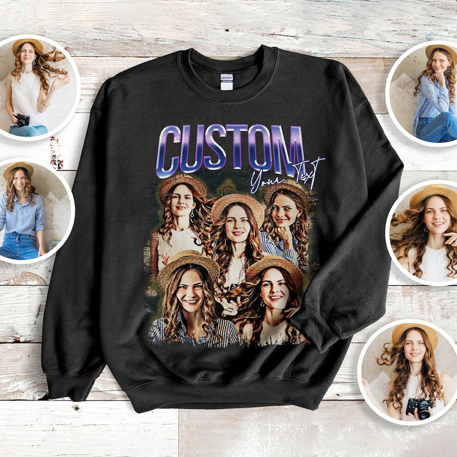 Personalized Vintage Bootleg Rap Sweatshirt Personalized Add Your Photo And Text Pullover
