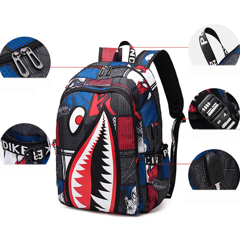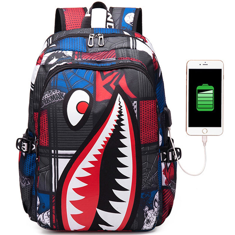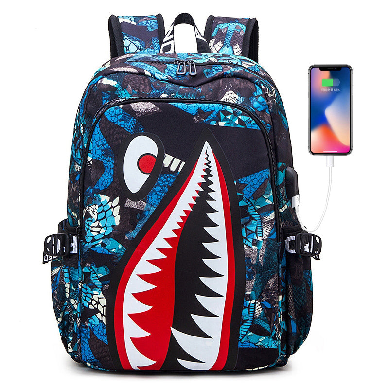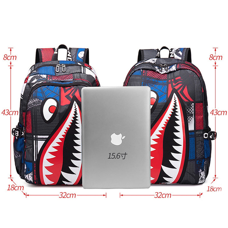 Unique Shark Teeth Printing Backpack Boy Book Bags for Primay/Middle School