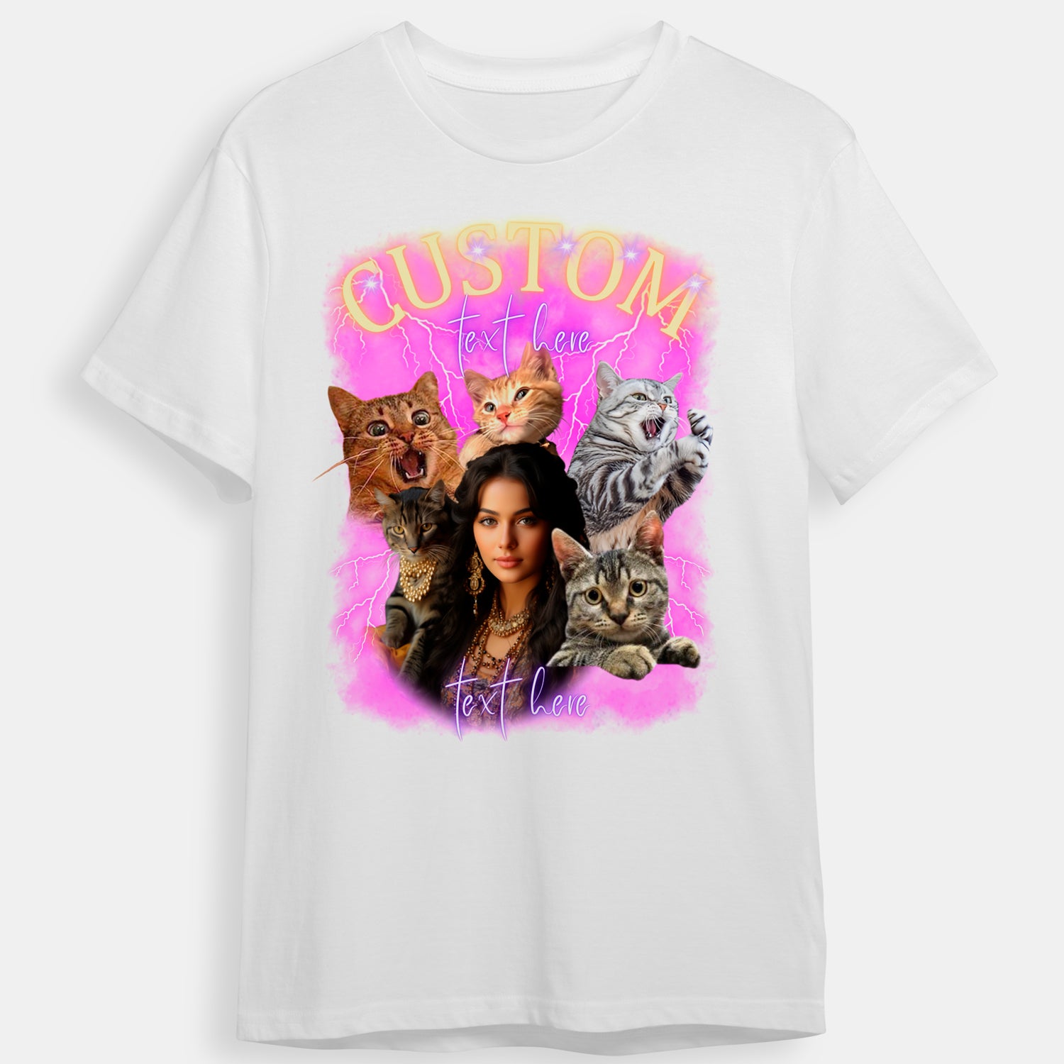 Vintage Bootleg Shirt Personalized with Your Own Cat's Photo Unique Gift for Cat Lover