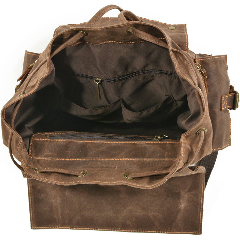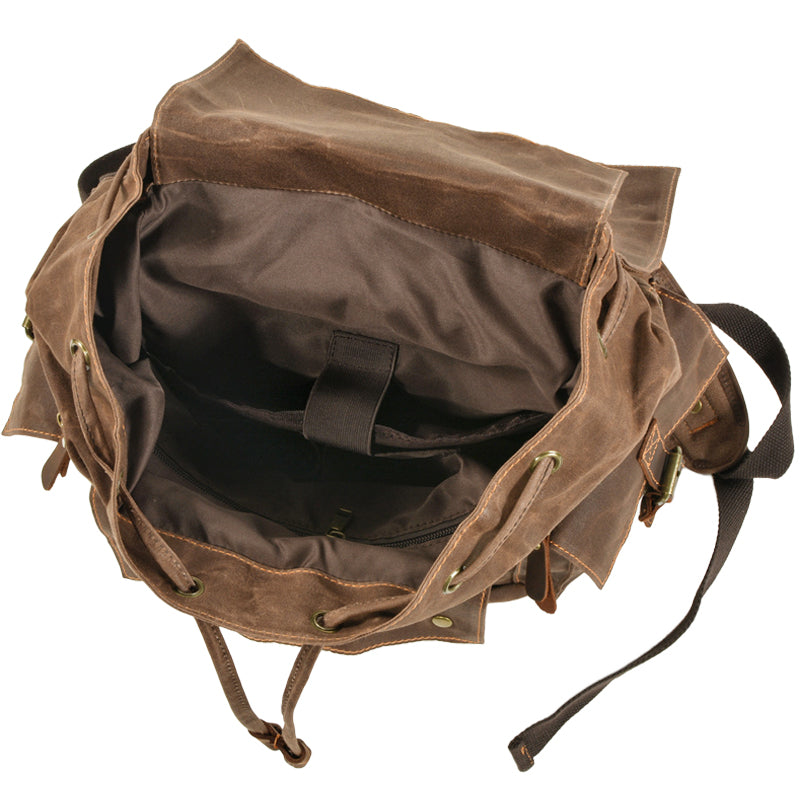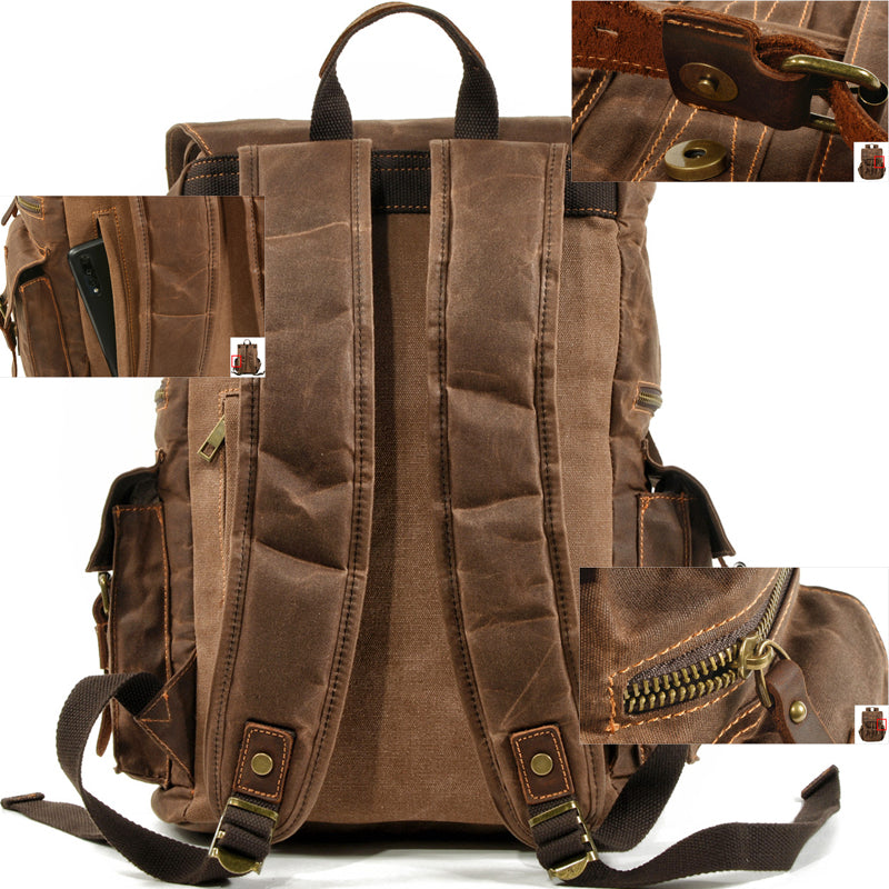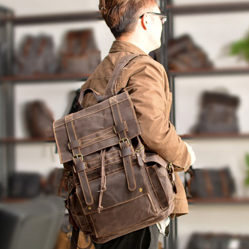 Features a classic solid-color design crafted from premium waterproof waxed canvas for a rugged yet stylish look. Designed with a spacious main compartment, padded computer interlayer, interior slot pockets, and a secure zip pocket to keep essentials organized. Lightweight yet durable, this backpack is water-resistant, wear-resistant, stain-resistant, and easy to clean for everyday use. Built with a drawstring closure and soft top handle for added convenience. Comfort-focused construction helps reduce shoulder pressure, making it suitable for daily commuting, travel, school, or outdoor activities.
