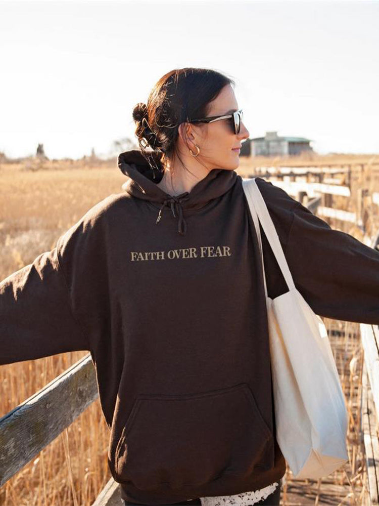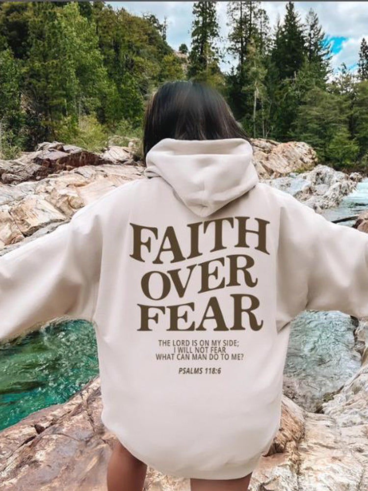 Women's Inspirational Faith Over Fear The Lord In On My Side Printed Hoodie